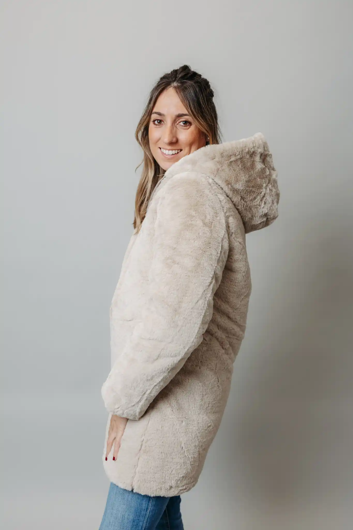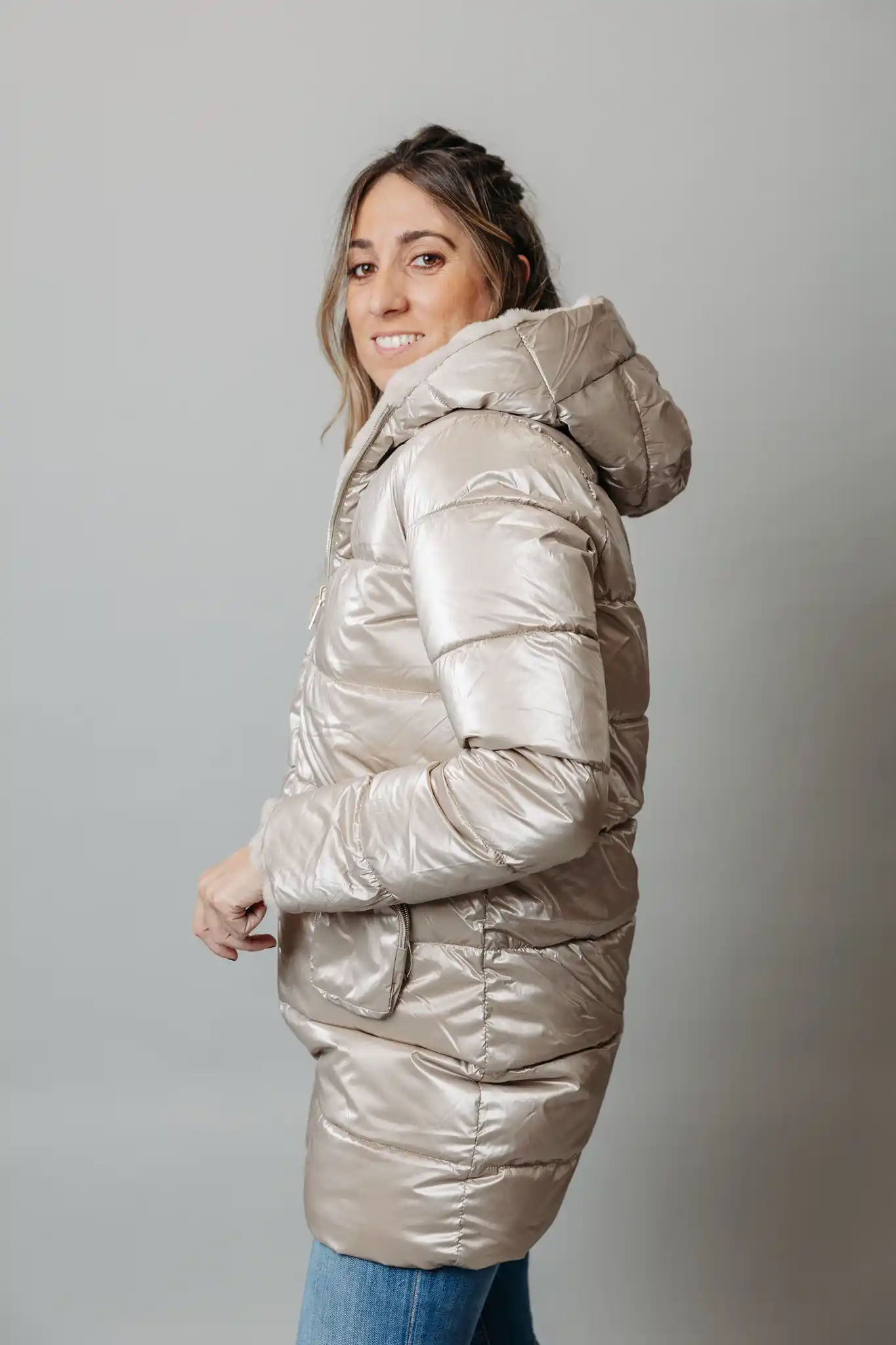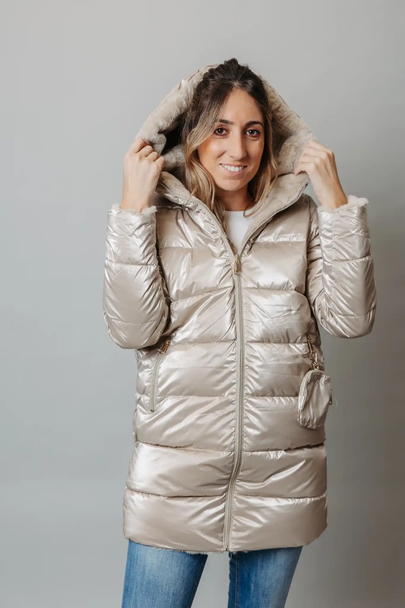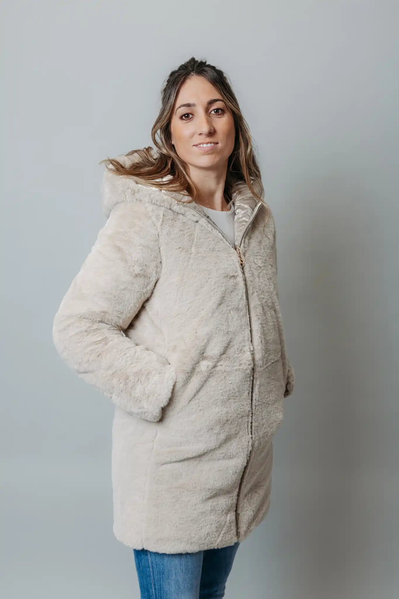 Este abrigo reversible es la solución perfecta para cualquier clima. Por un lado, es un chubasquero impermeable, ideal para protegerte de la lluvia y el viento y por el otro lado, está forrado con suave pelo sintético, ofreciendo calidez y confort en los días más fríos. ¡Haz tu pedido ahora!