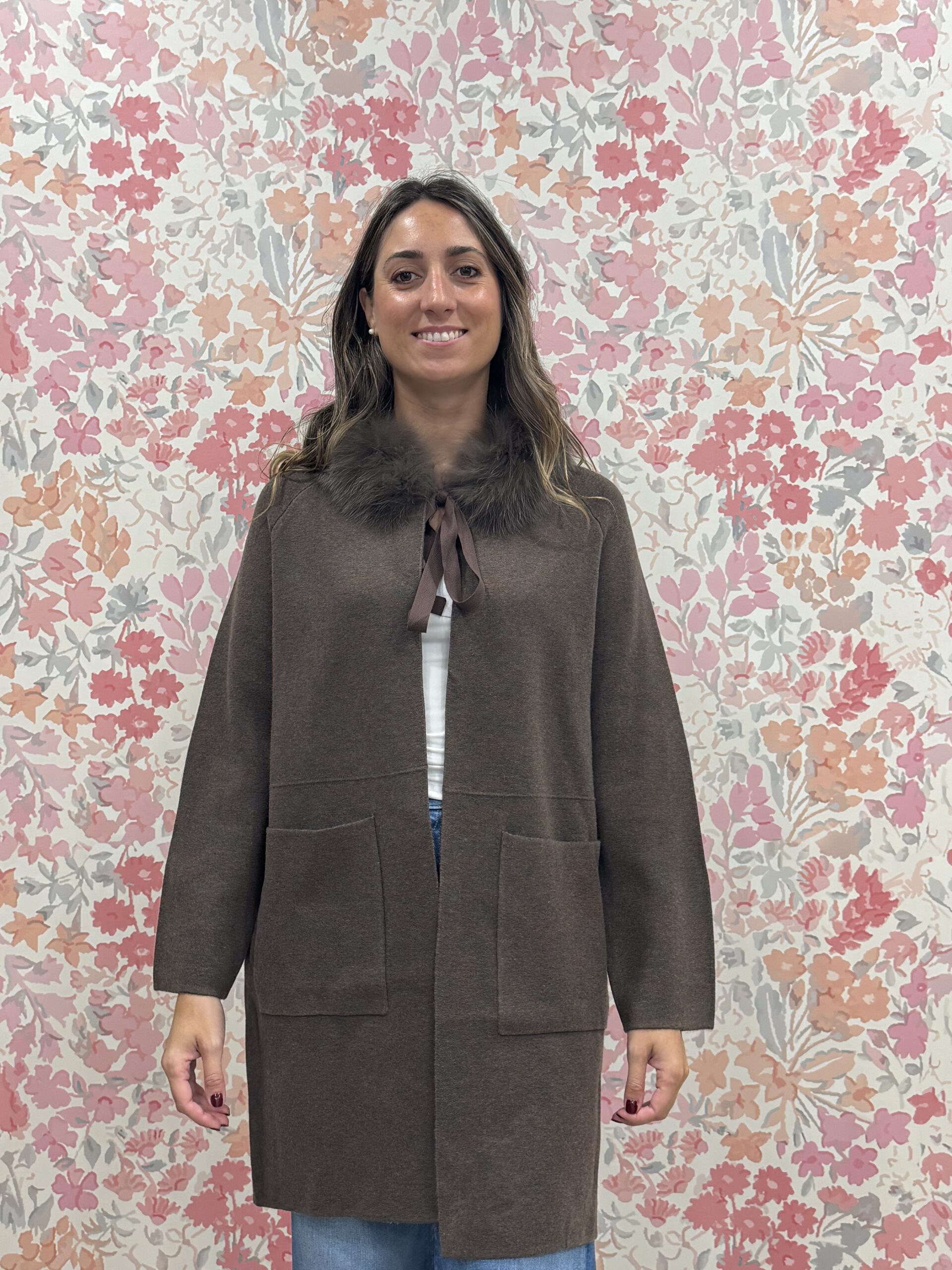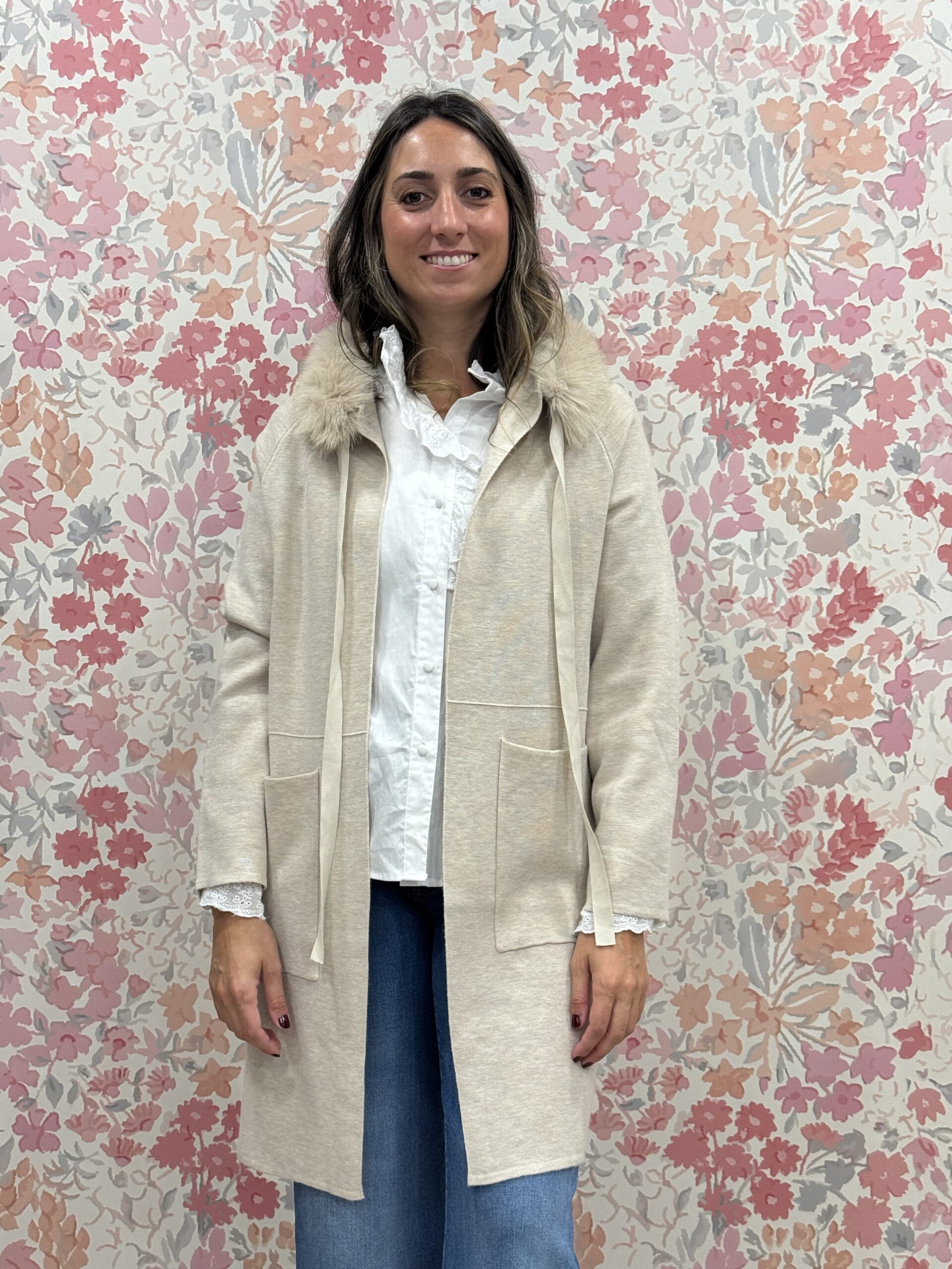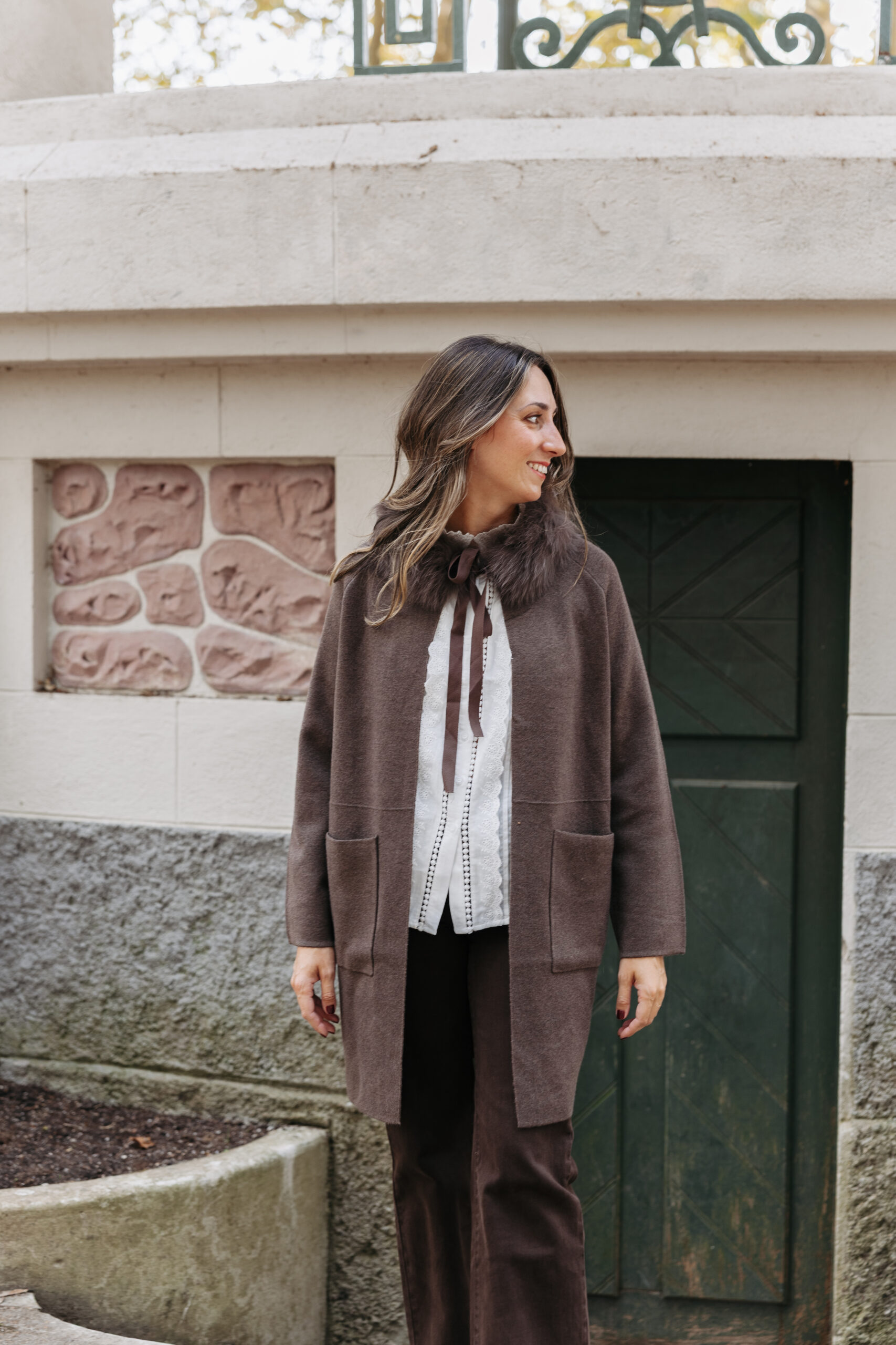 Este abriguito de punto combina la suavidad del tejido ligero con el toque de su cuello de pelo natural, . Una prenda perfecta para esos días en los que el clima cambia, pero el estilo no.