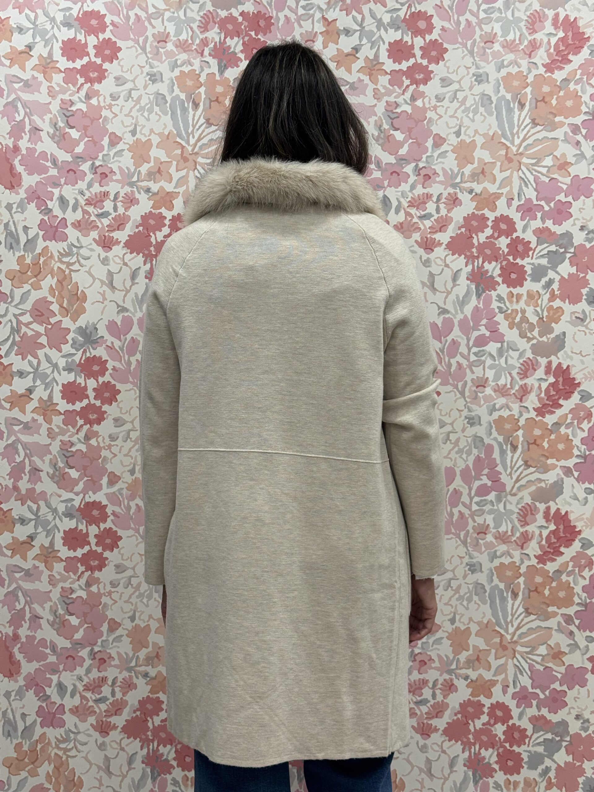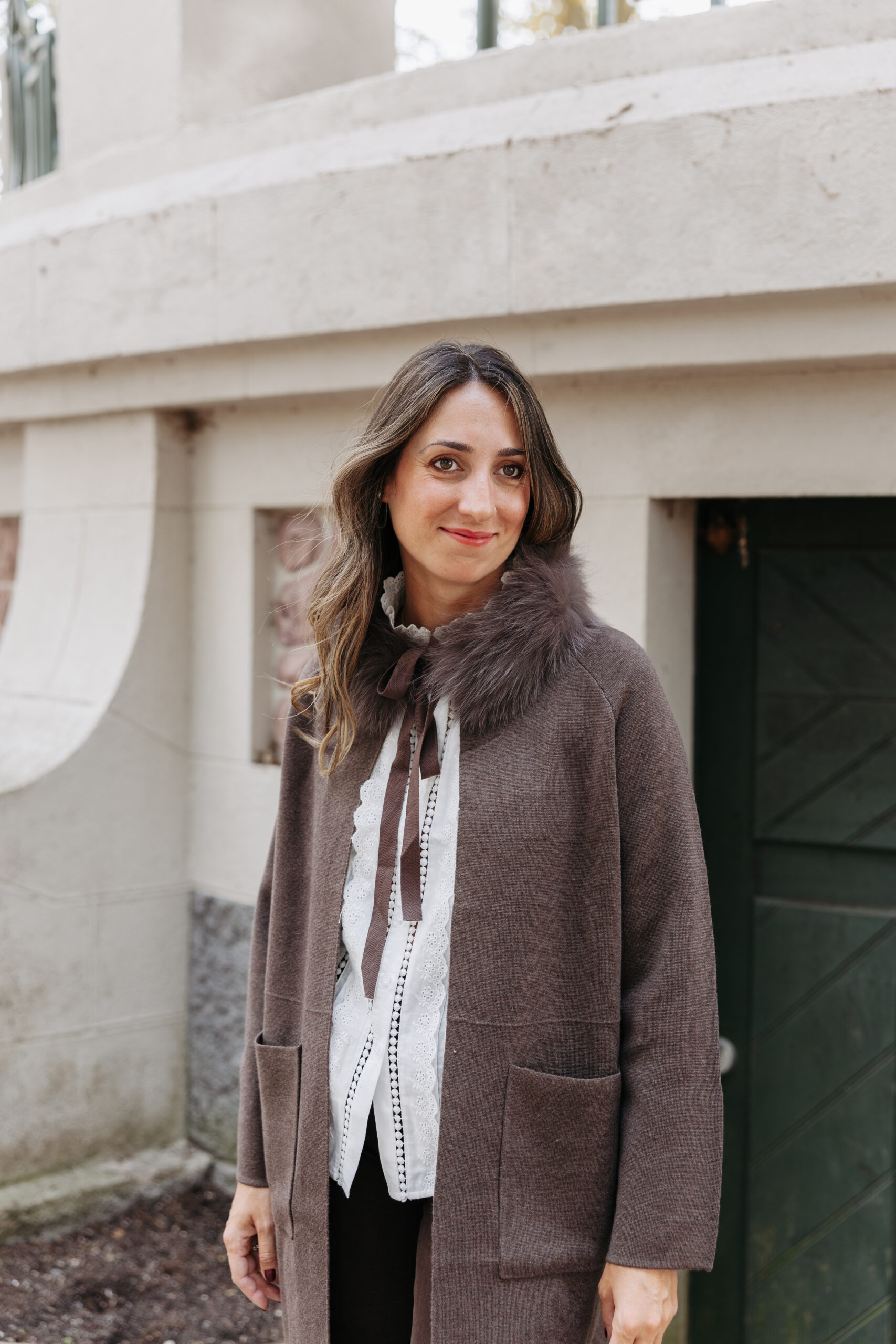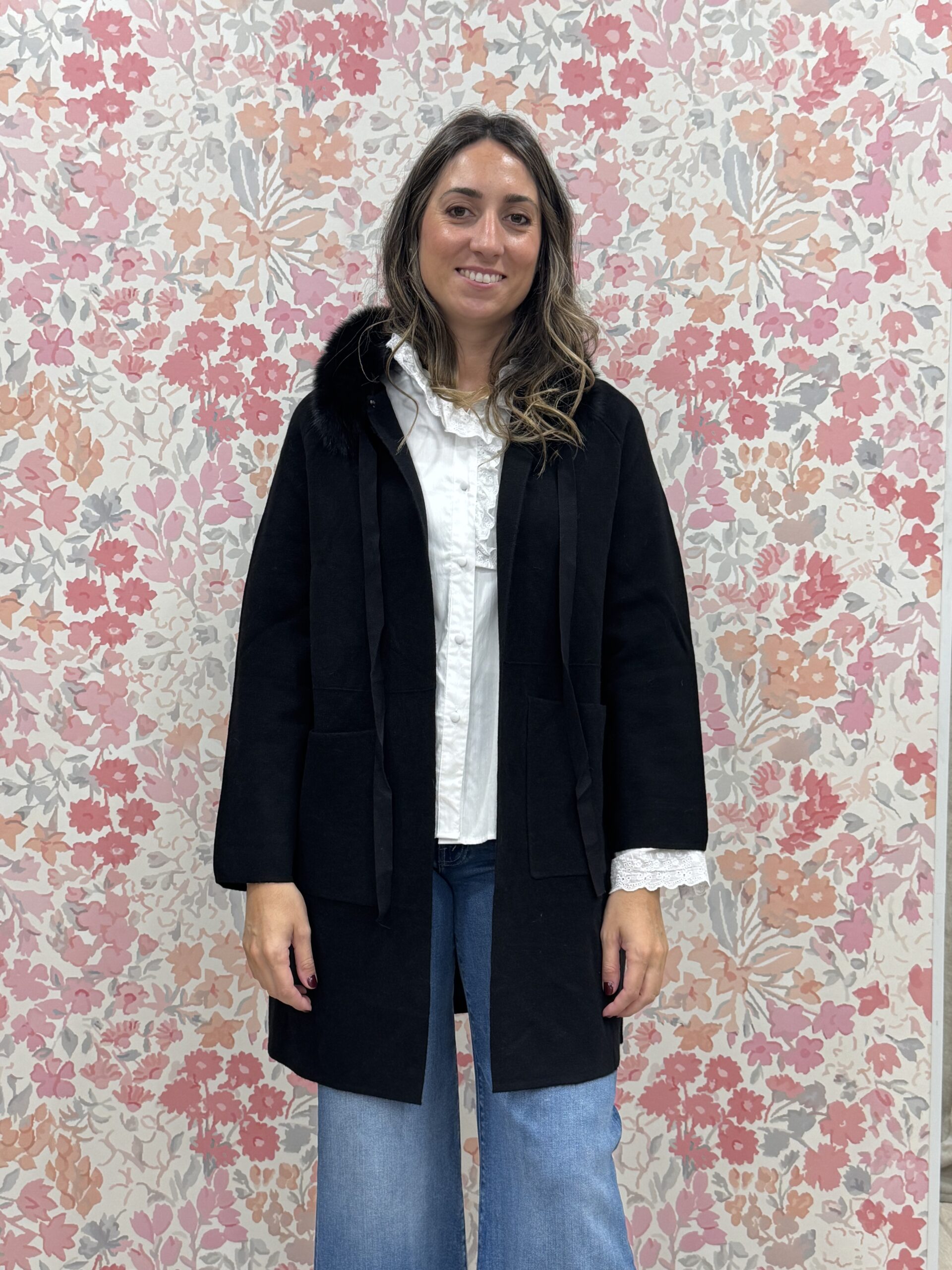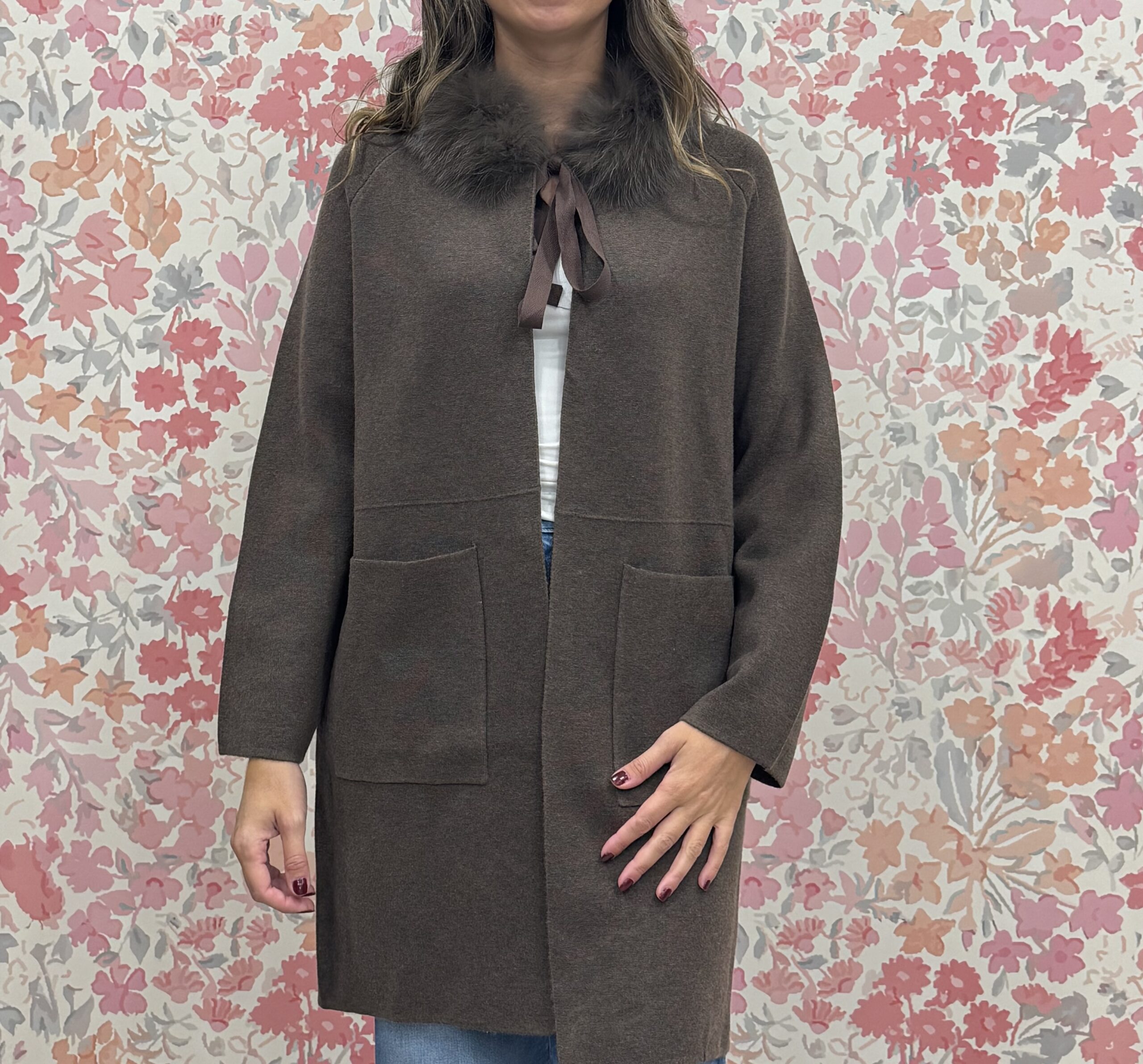 Este abriguito de punto combina la suavidad del tejido ligero con el toque de su cuello de pelo natural, . Una prenda perfecta para esos días en los que el clima cambia, pero el estilo no.
