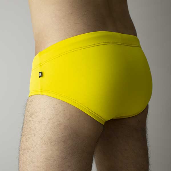 Bañador color Amarillo con elástico de 3cm en la cintura, cordón expuesto por medio de ojales y punteras inoxidables, medida de costado 8cm, forro interno que impide transparencias y da comodidad, ideal para practicar natación y estar en la playa.