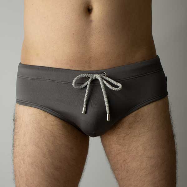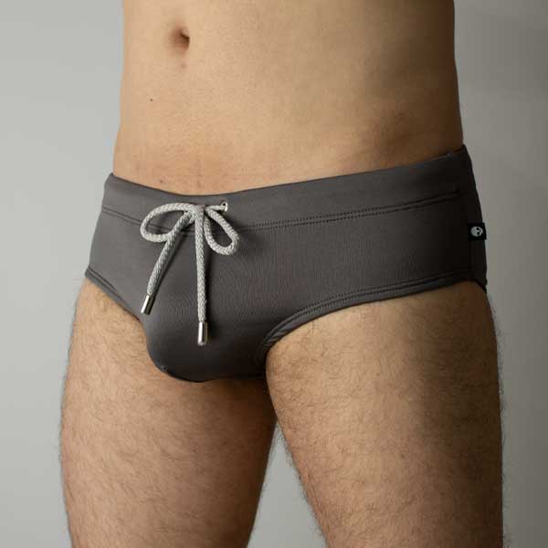 Bañador Gris con elástico de 3cm en la cintura, cordón expuesto por medio de ojales y punteras inoxidables, medida de costado 8cm, forro interno estampado que impide transparencias y da comodidad, traje de baño ideal para practicar natación y estar en la playa.
