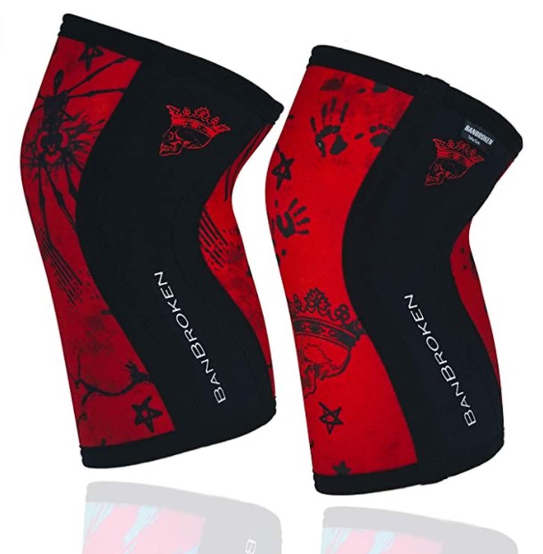 BanBroken Rodilleras RED SKULL (2 unds) – 5mm Knee Sleeves – Halterofilia, Deporte Funcional, Crossfit, Levantamiento de Pesas, Running y Otros Deportes. Unisex.