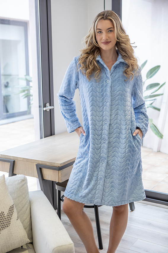 Bata de pelo lisa abotonada