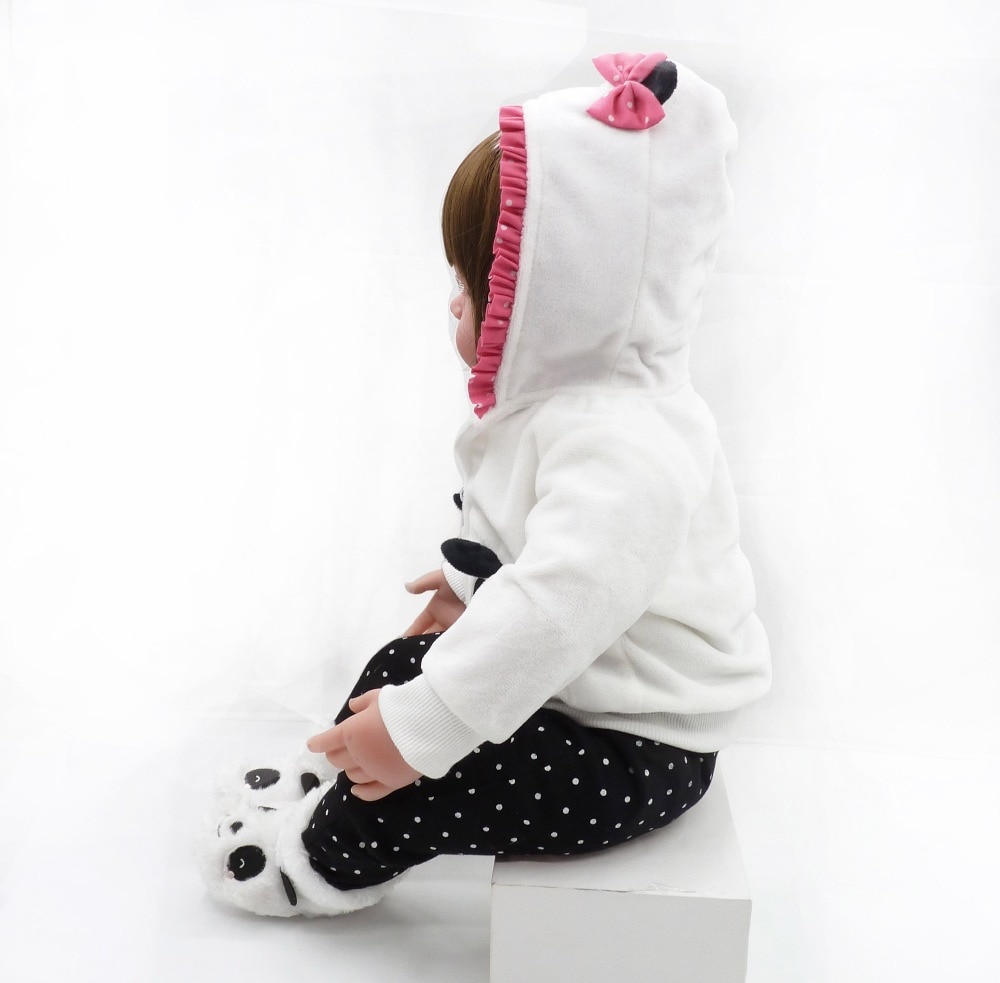 Material: Cabeza de vinilo de silicona muy suave. 3/4 extremidades con cuerpo de algodón relleno PP. Muy suave tacto real