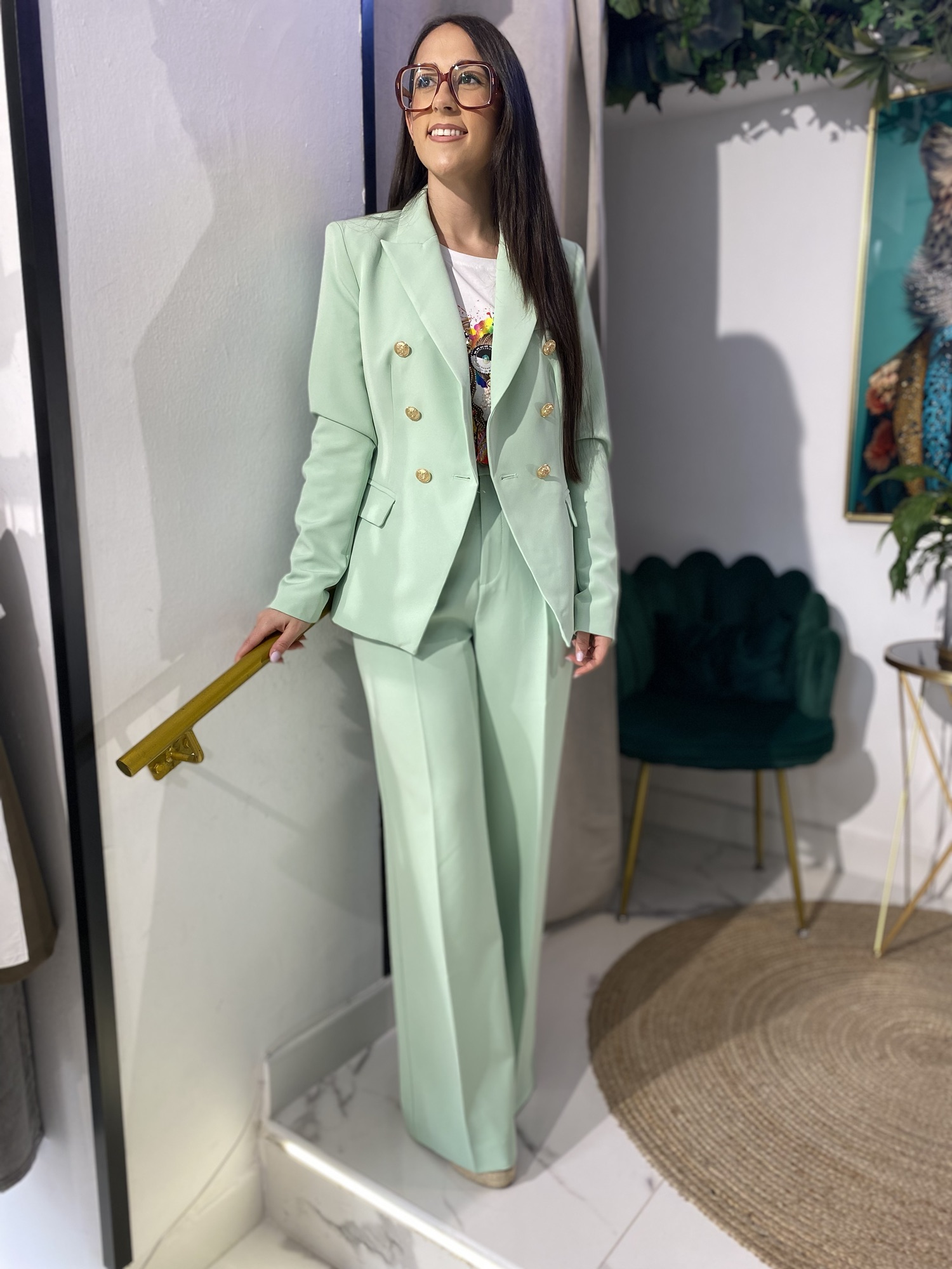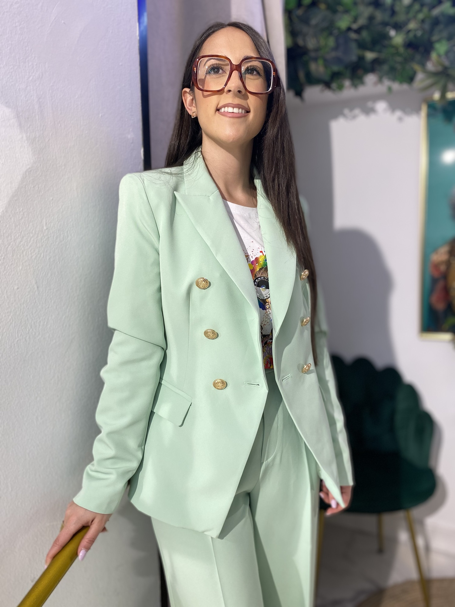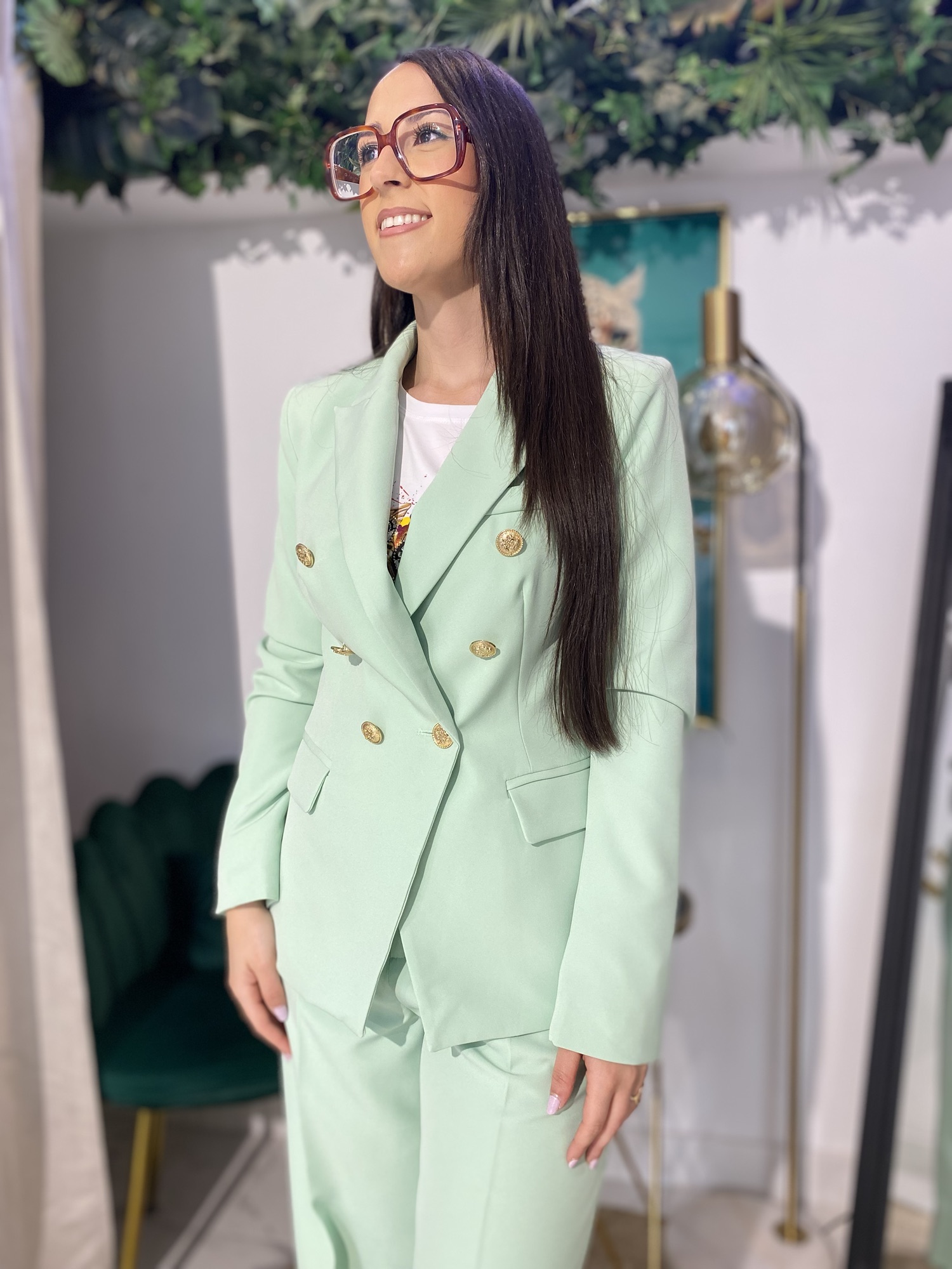 Blazer cruzada botones verde menta