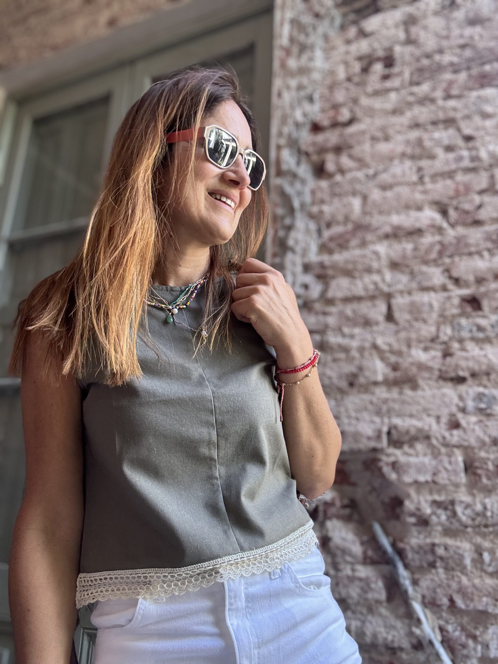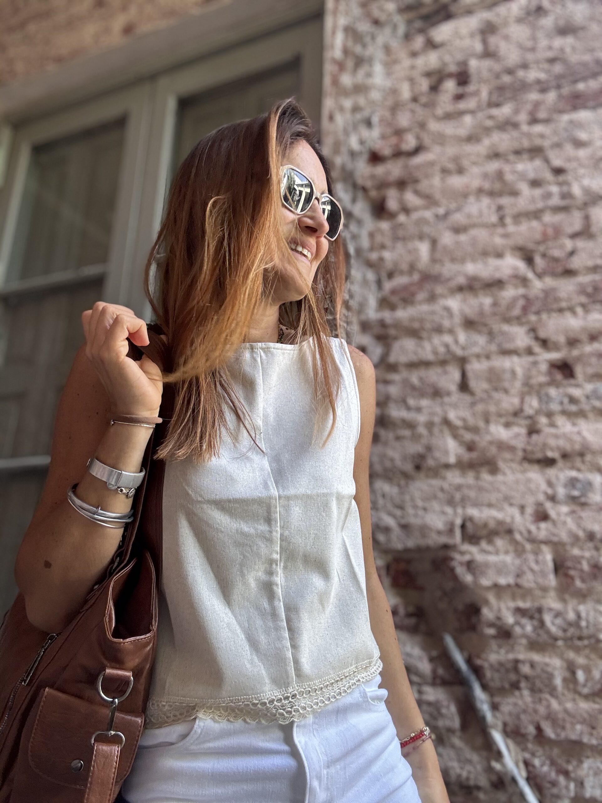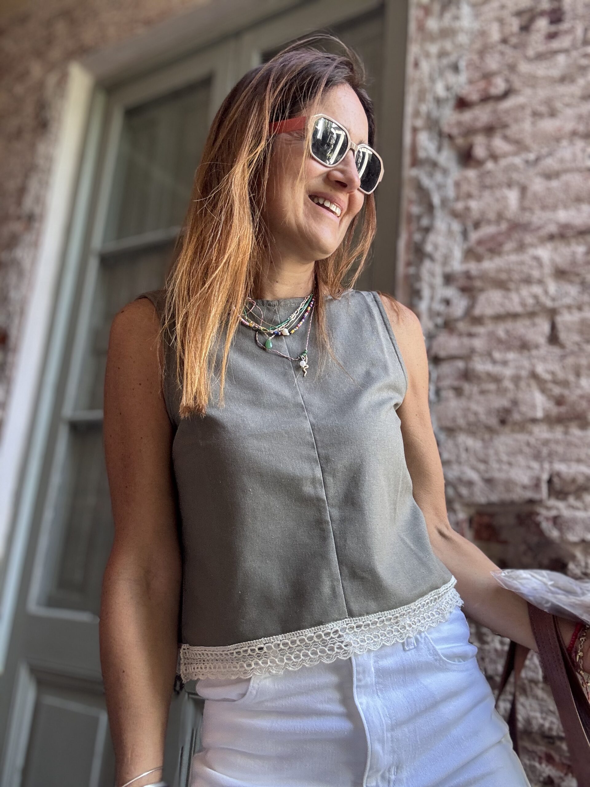 Blusa de lino con puntilla y espalda descubierta