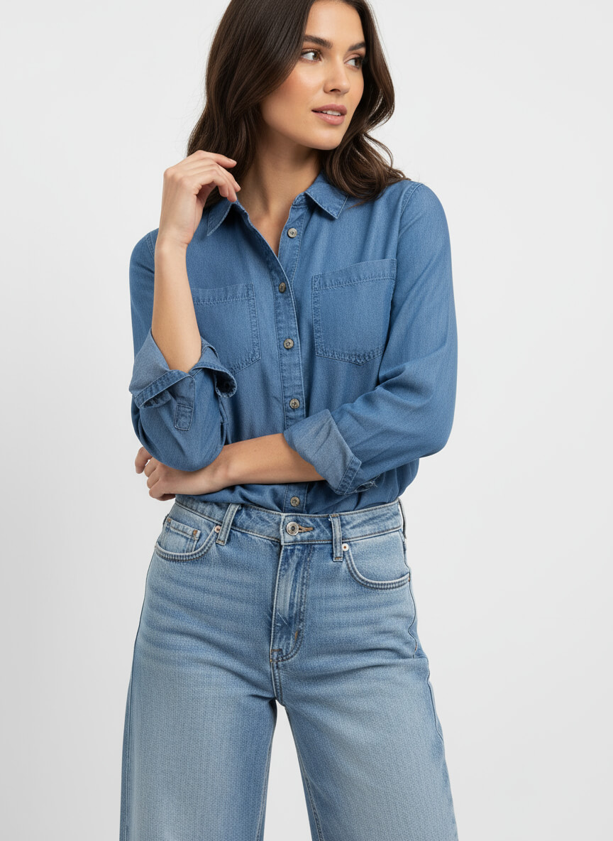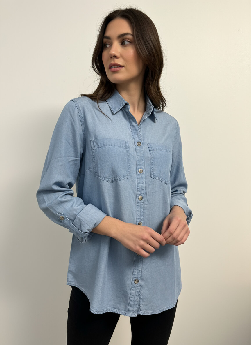 Blusa en denim liviano y mangas arrollables
