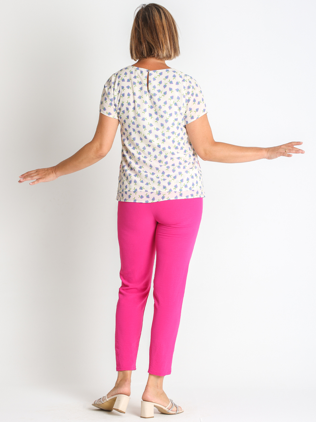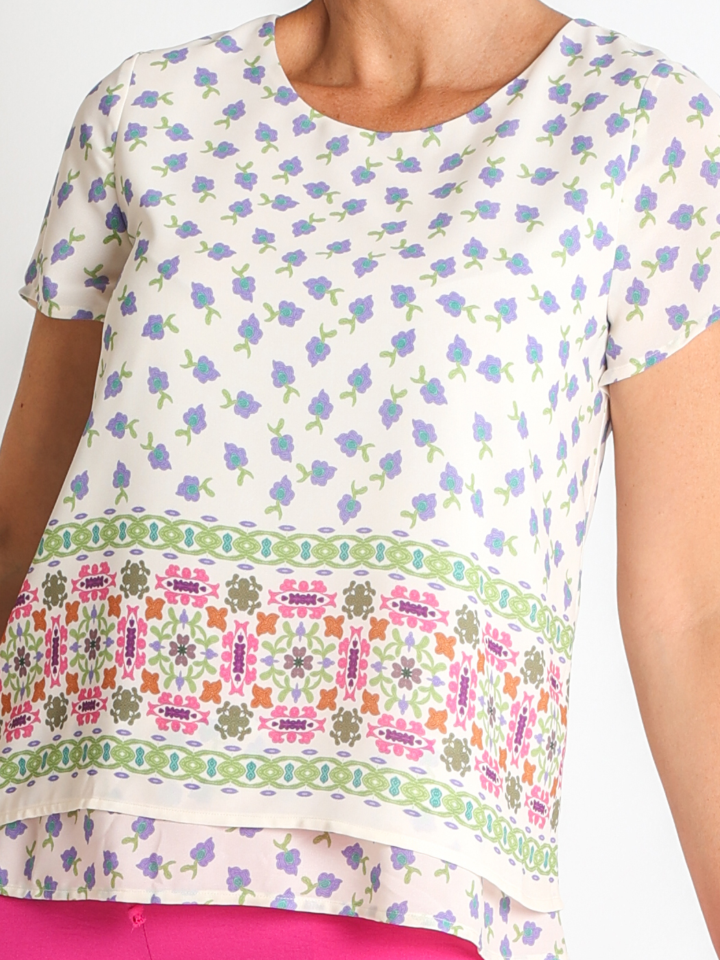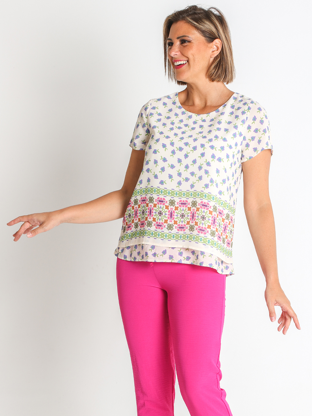 Blusa estampada fabricada en tejido vaporoso y suave.