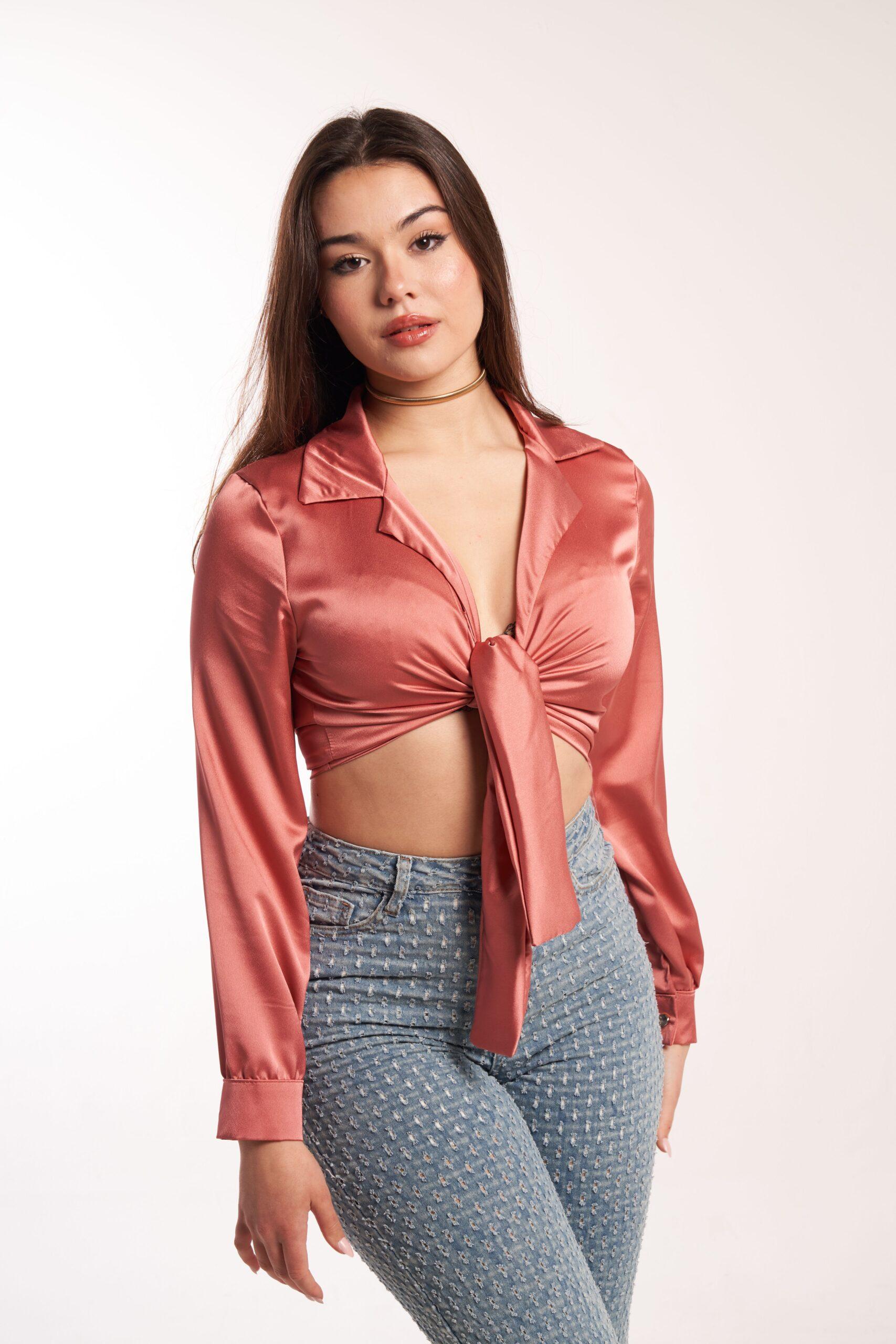 Podrás ajustarlo según tu talla de pecho con un nudo en el escote.
