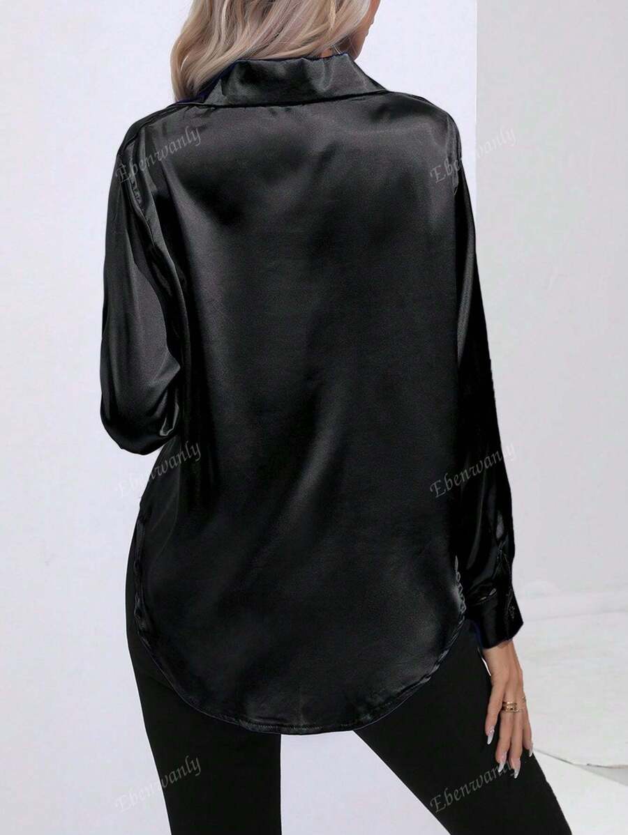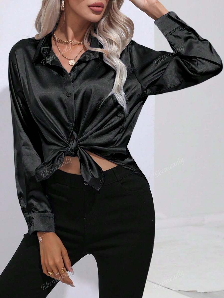 Composición: 100% Softpoliéster (símil algodón). Esta camisa de satén negro, sin forro y de estilo elegante, es perfecta para elevar cualquier look diario con un toque de sofisticación. Su diseño liso y suave al tacto incluye escote con cuello camisero, hombros caídos y manga larga, ofreciendo un ajuste regular y cómodo. Con botones al frente y corte del bajo normal, mantiene una estructura clásica que se adapta a distintas ocasiones sin perder su esencia refinada. Confeccionada en tela no elástica, no es transparente y puede lavarse en lavadora o mediante limpieza en seco profesional.