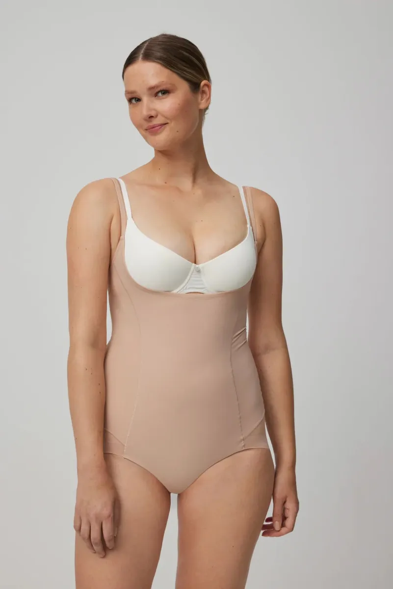 Body-Up reductor que moldea la parte media del cuerpo con gran confort. Cuenta con paneles de control localizados en puntos estratégicos que ayudan a moldear la figura, definiendo de forma armónica tus curvas. Control en abdomen alto, medio y bajo; cintura y parte baja de la espalda. Tejido elástico con corte láser en los glúteos con efecto tanga y moldeador. Tela suave con ajuste ergonómico perfecto al cuerpo y tan delgada que es imperceptible bajo la ropa.