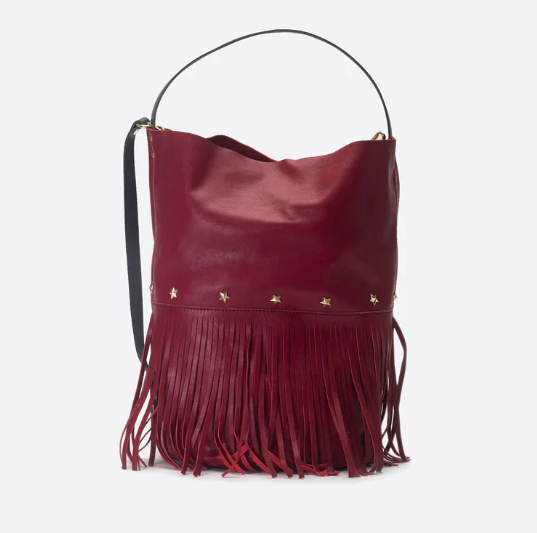 Es un bolso saco, ligero y con gran capacidad, con ese toque especial que le aporta los flecos.