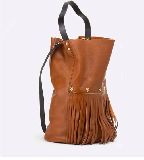 Es un bolso saco, ligero y con gran capacidad, con ese toque especial que le aporta los flecos.