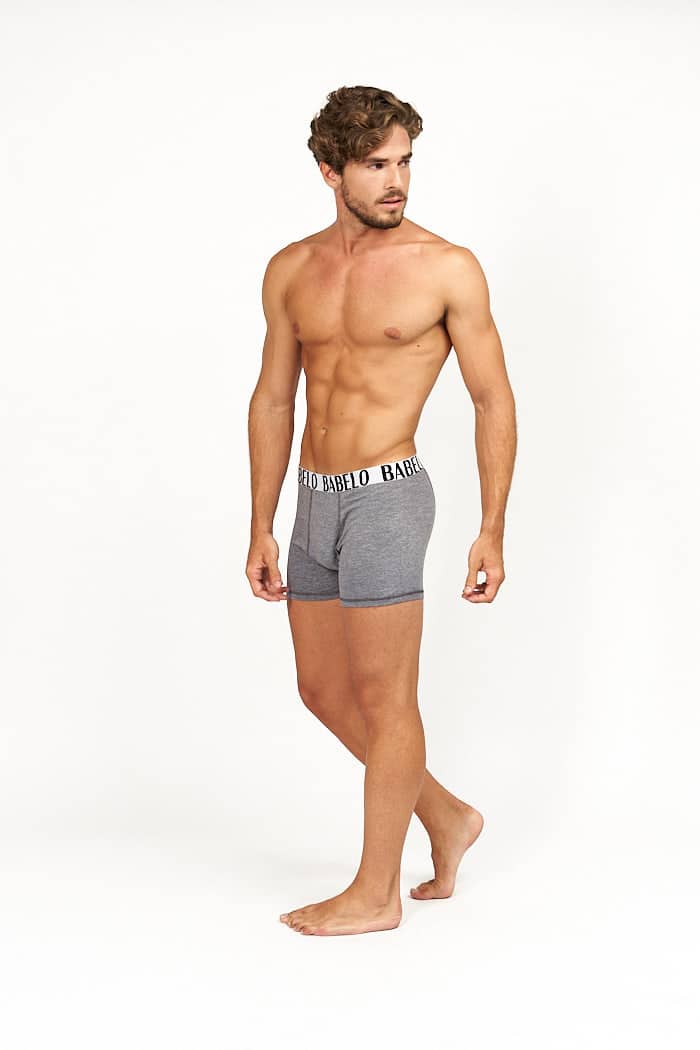 Bóxer de algodón color gris liso, compuesto por 96% algodón de alta calidad y 4% elastanano.