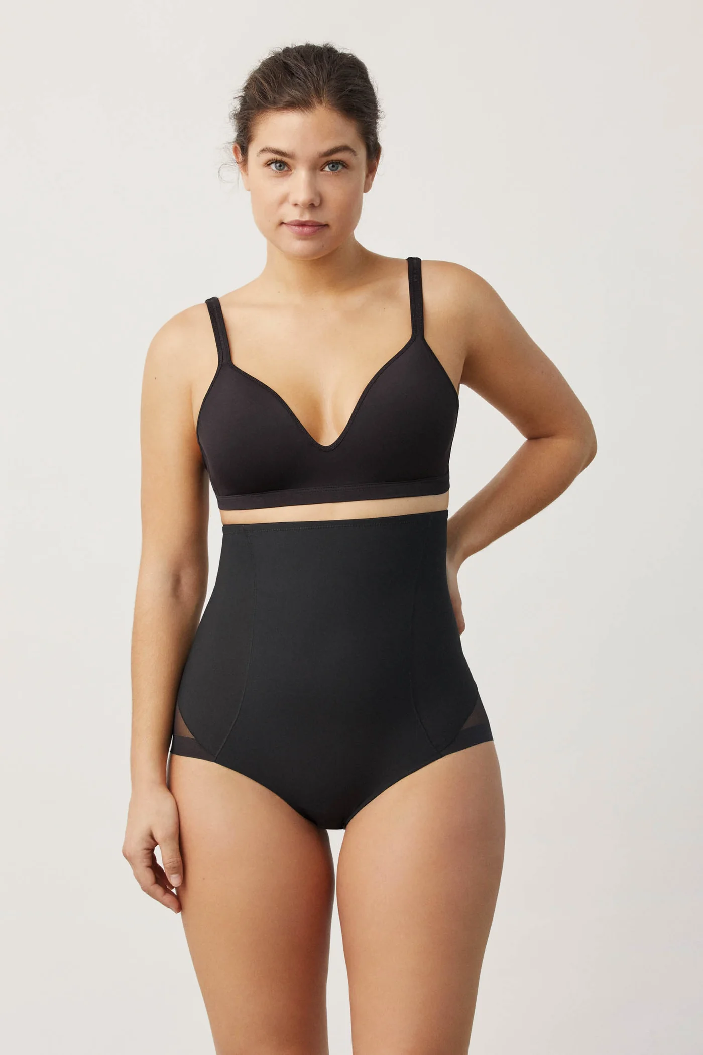 Braga alta reductora de control fuerte sobre abdomen alto, medio y bajo, cintura y espalda. Compresión media. Incorpora pieza central de refuerzo para mayor sensación de vientre plano. Banda de silicona para asegurar su adaptabilidad. Braga clásica combinada con tejido invisible corte láser en los glúteos con efecto tanga. Sus costuras planas consiguen un total efecto invisible. La comodidad y sujeción de una braga y la sofisticación de un tanga, todo en una misma prenda.