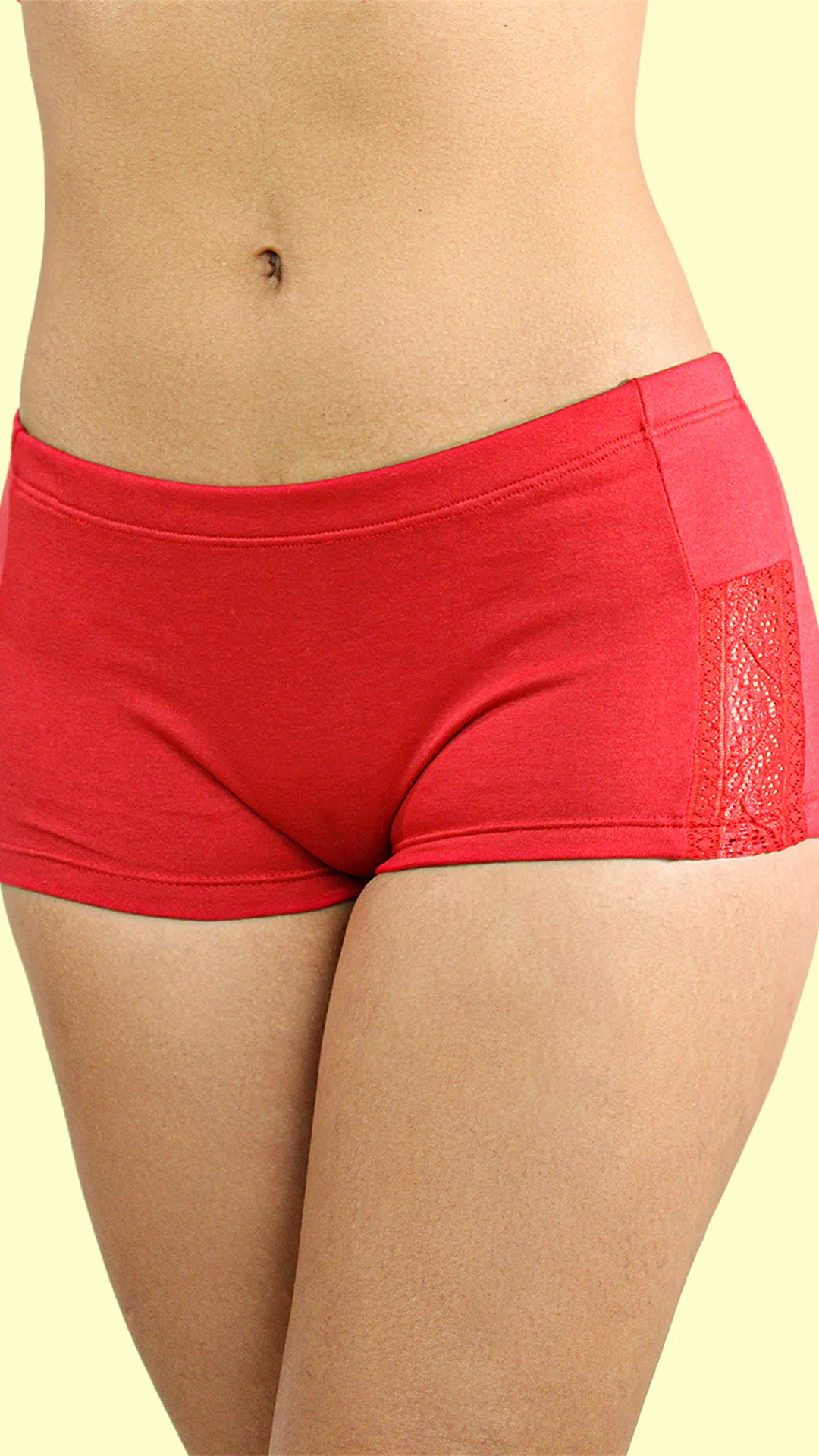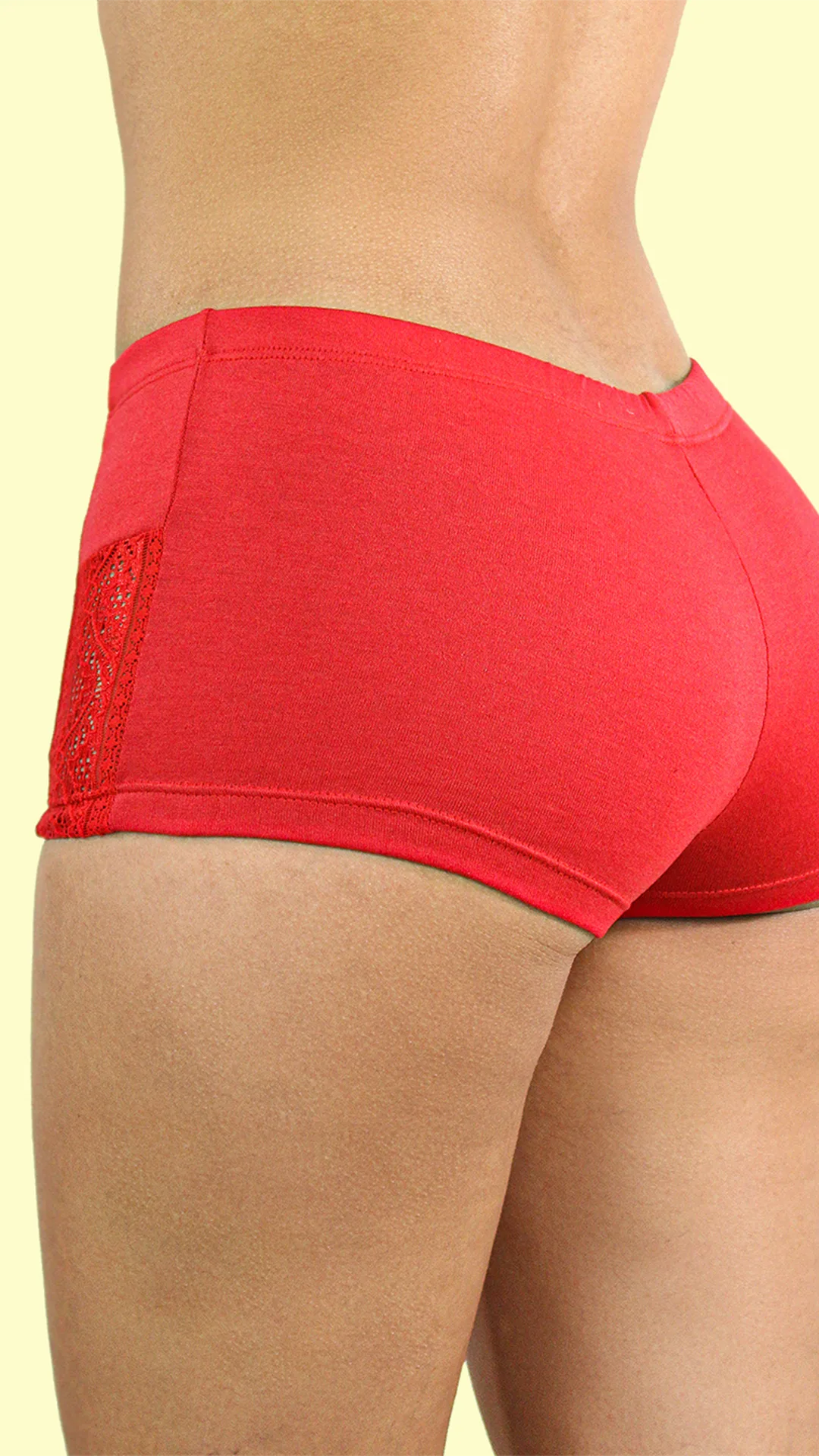 Cachetero en Algodón Rojo con Apliques de Encaje Lateral