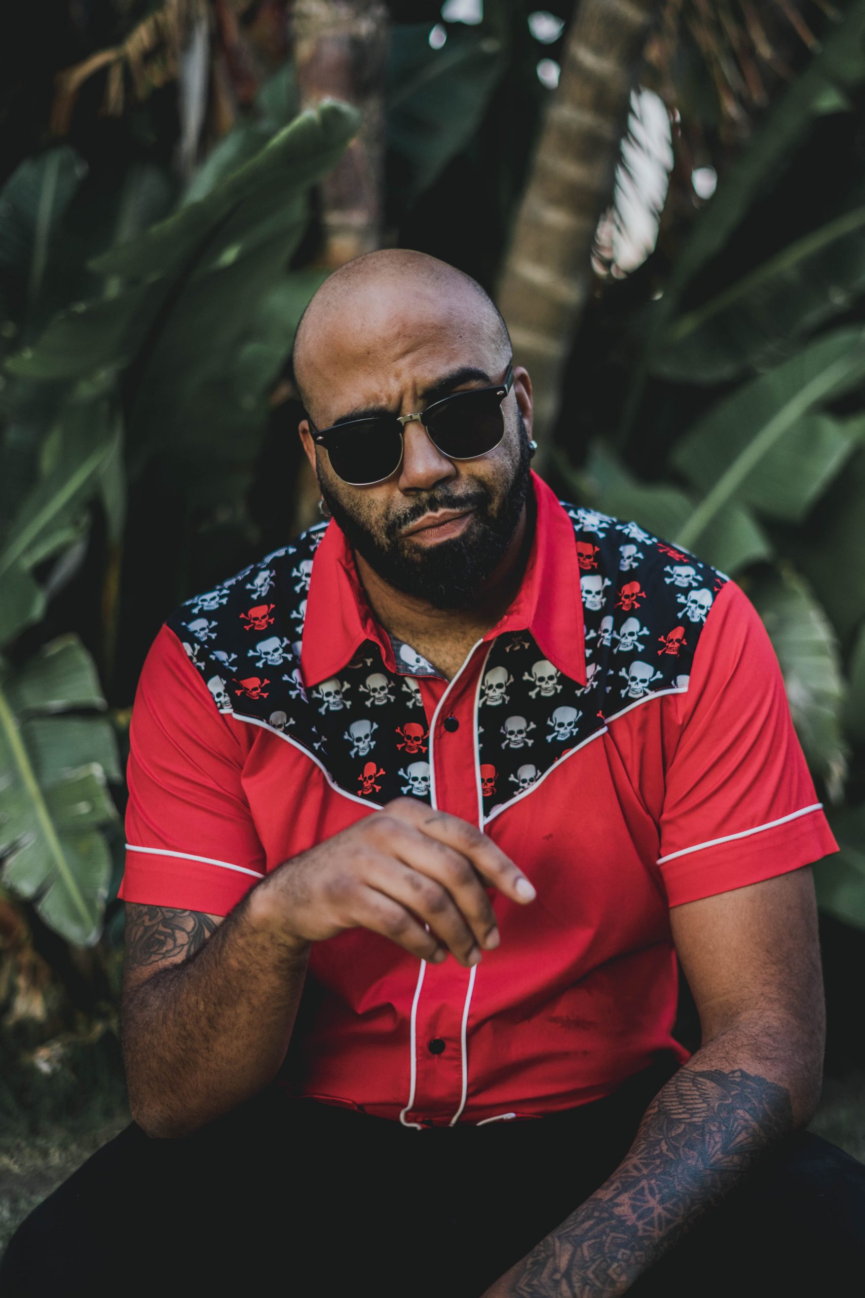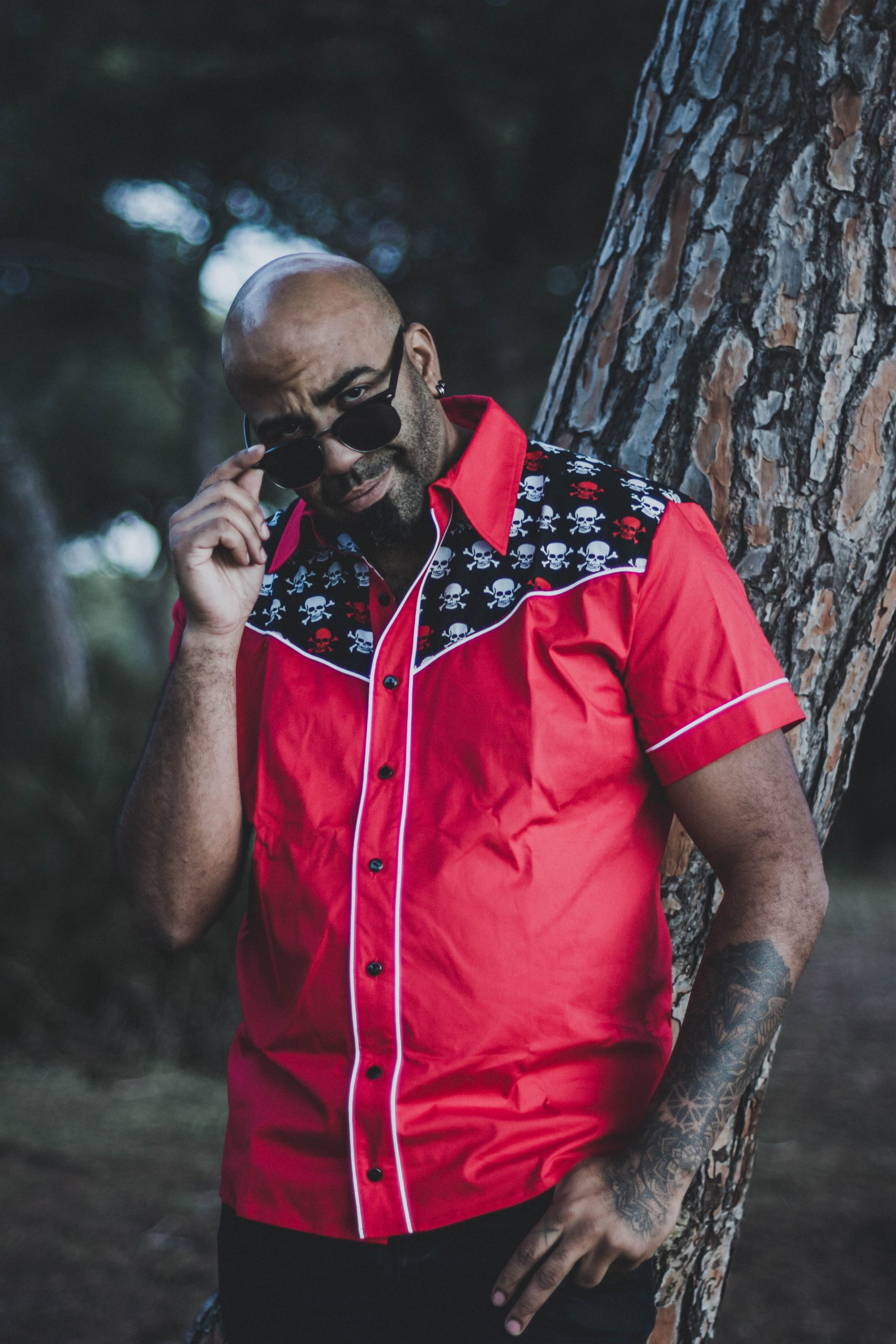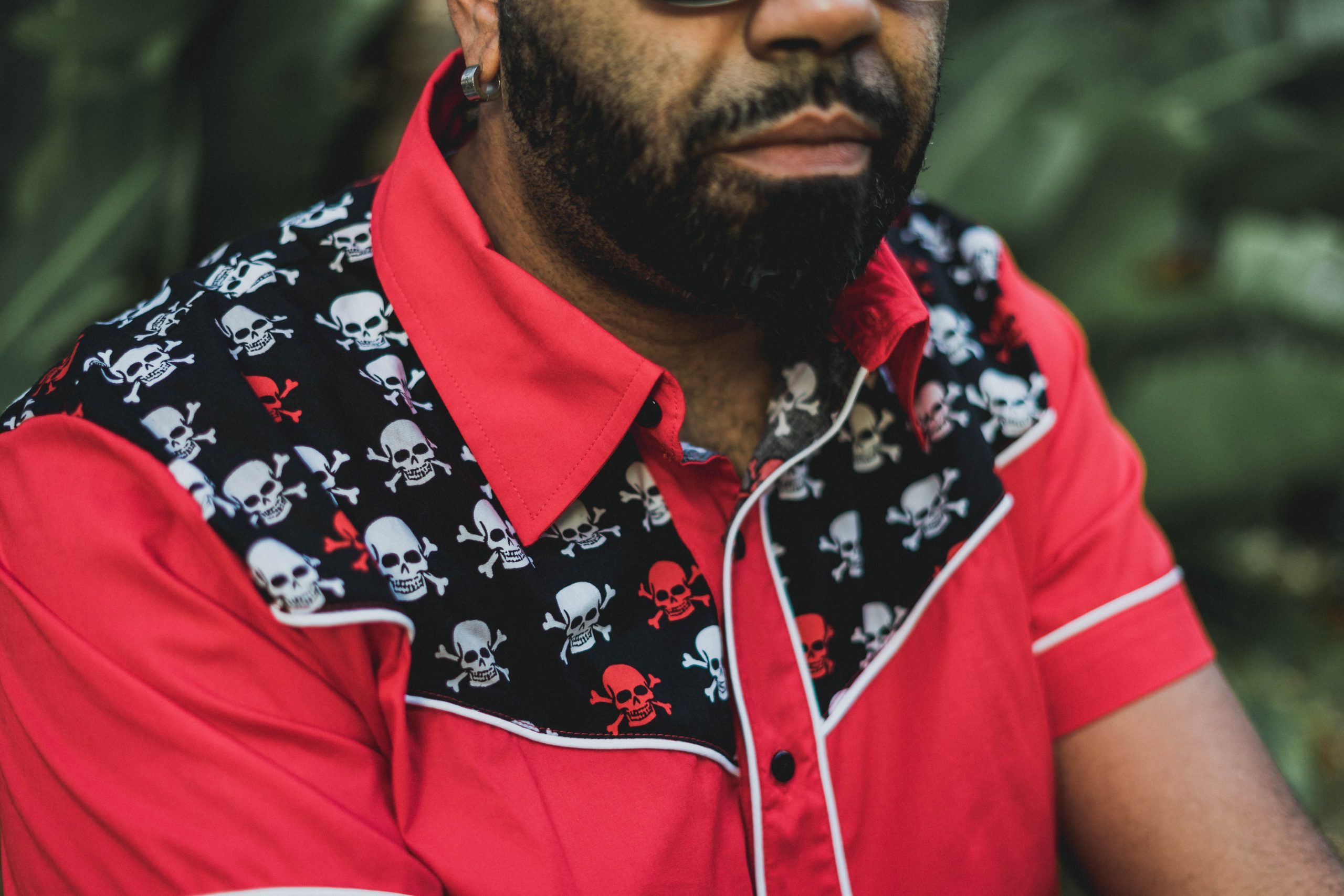Camisa de hombre roja con canesú estampado de calaveras. 100% algodón. EDICIÓN LIMITADA.