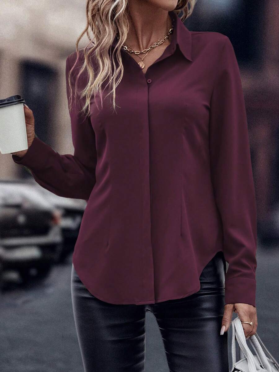 Composición: 100% Soft Poliéster (símil algodón). Esta camisa de estilo casual combina un diseño liso con un elegante tono rojo violeta, ideal para ocasiones como el Día de Acción de Gracias u otros eventos informales. Presenta cuello camisero, mangas largas y corte normal, ofreciendo un ajuste regular que aporta comodidad sin perder estructura. Confeccionada en tela tejida no elástica y sin forro, mantiene una apariencia pulida y ligera. Los detalles de botones frontales añaden un toque clásico, mientras que su cuidado es sencillo gracias a que puede lavarse a máquina o mediante limpieza en seco profesional.