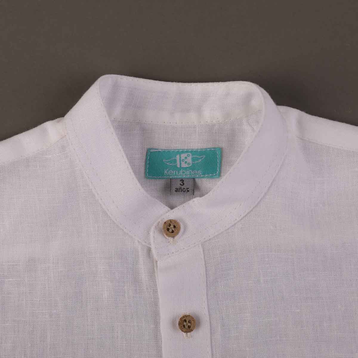 Camisa en tono blanco 100% algodón. Calidad fresca y cómoda. Telas 100% orgánicas hipoalergénicas.