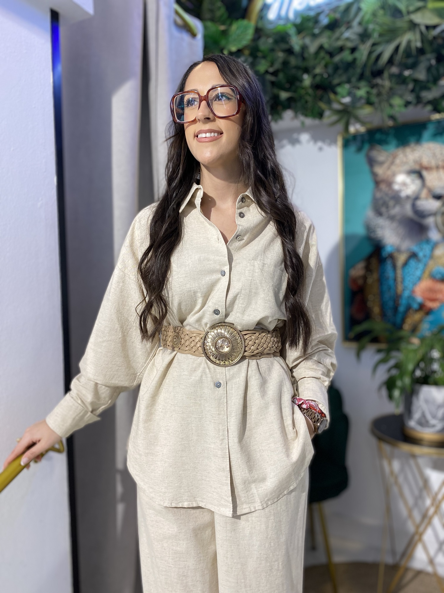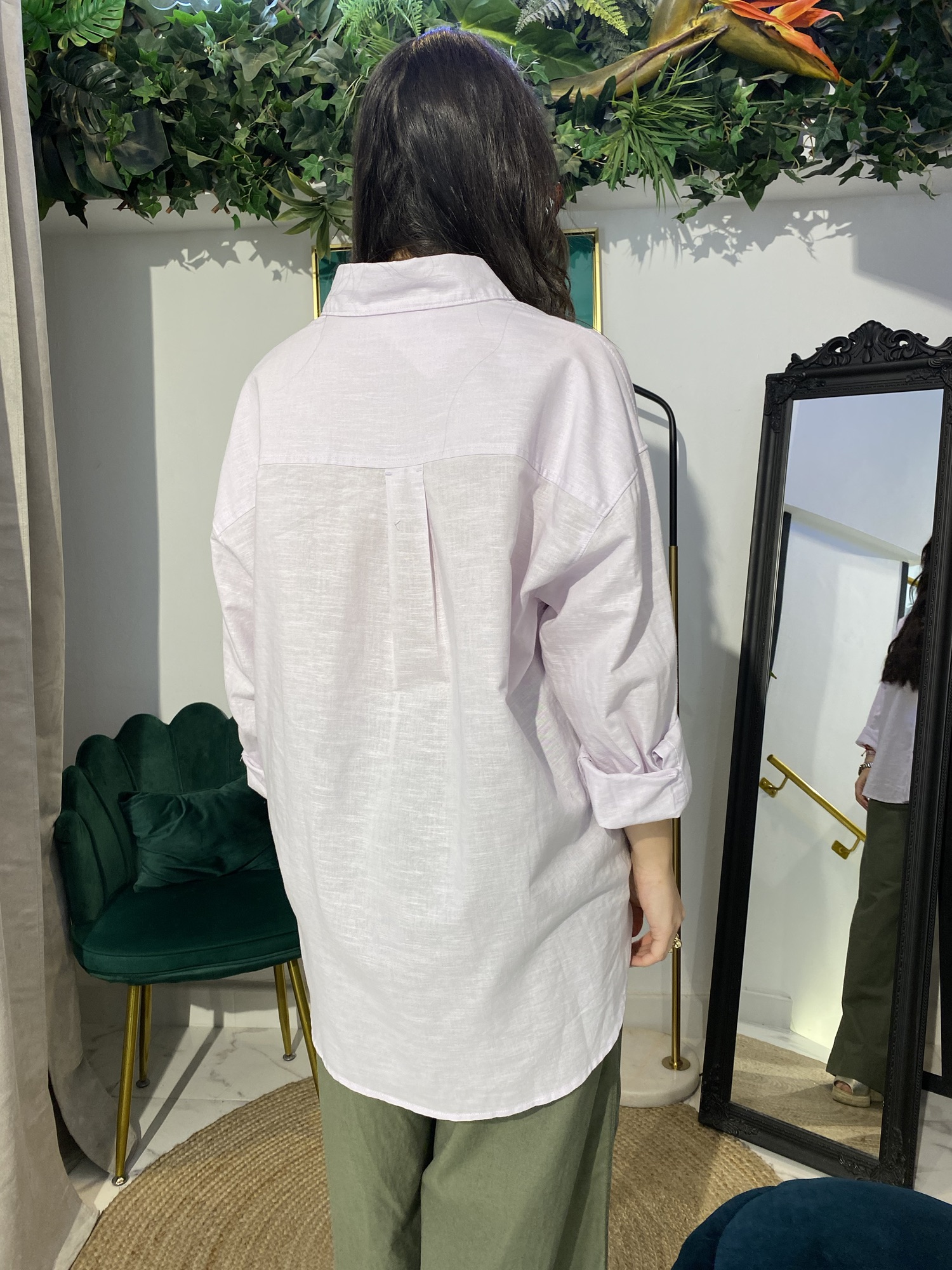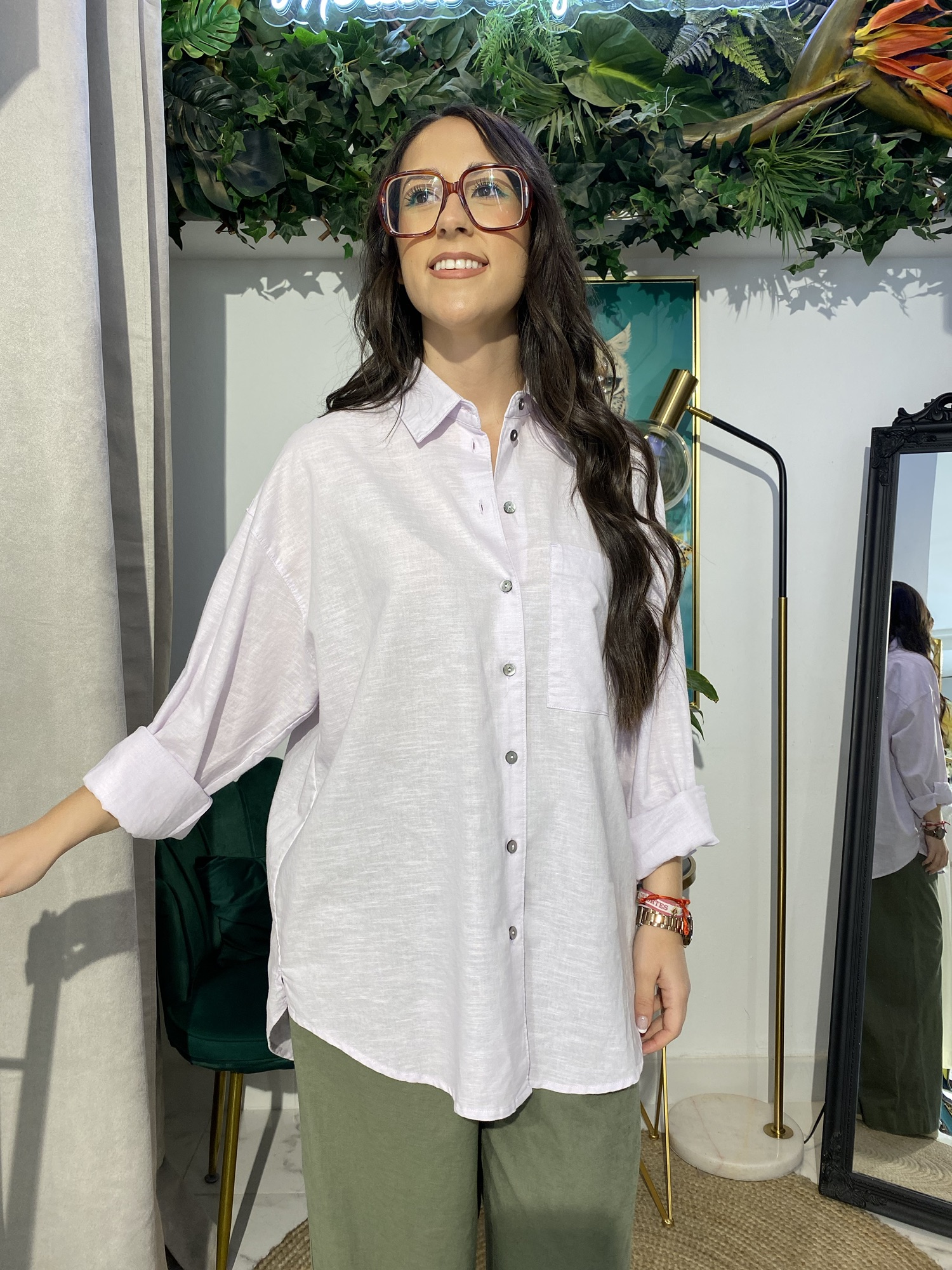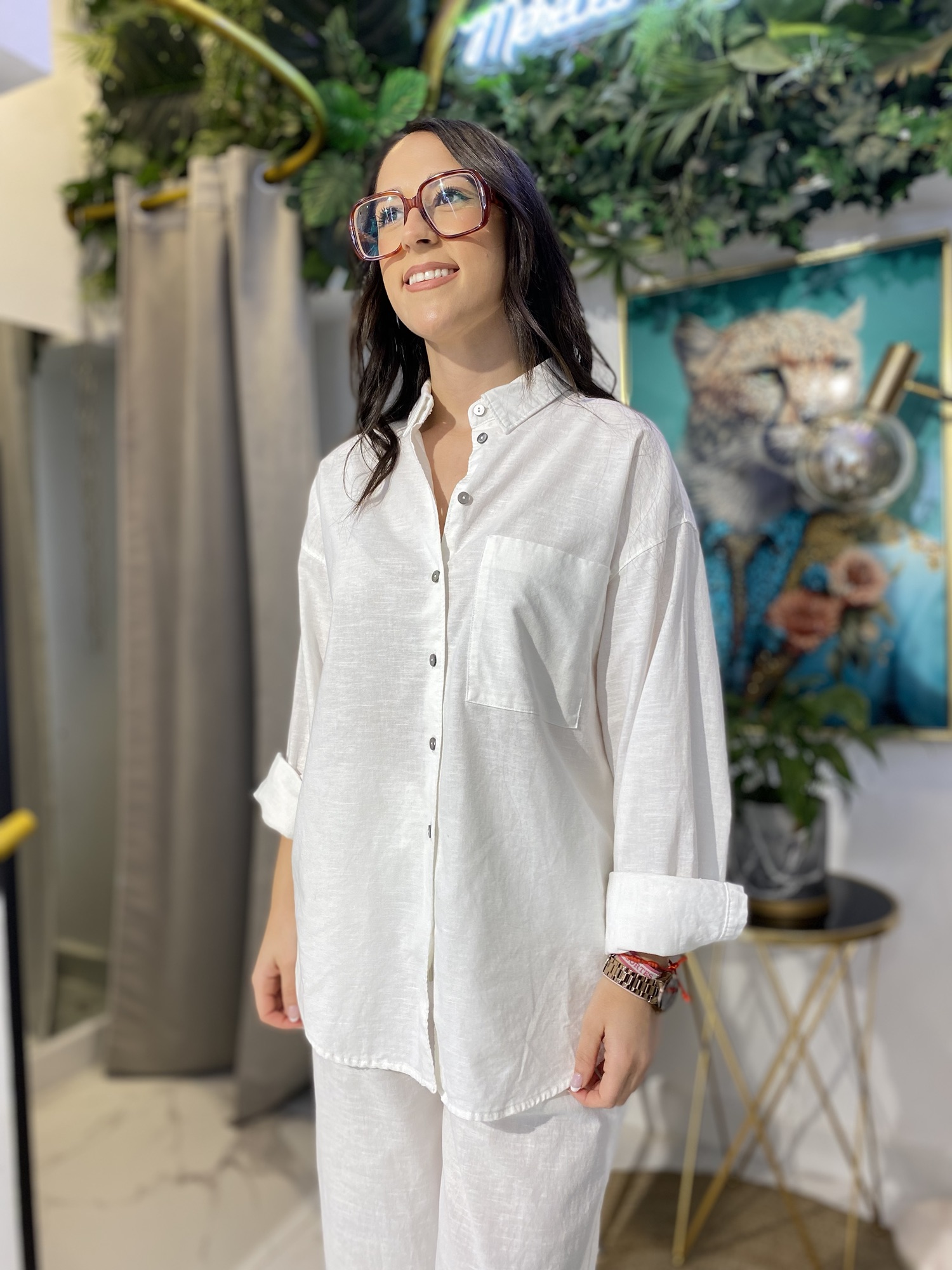 Camisa de lino básica, un imprescindible para el verano. Su tejido ligero y fresco te brinda comodidad, mientras que el bolsillo le da un toque casual y funcional.