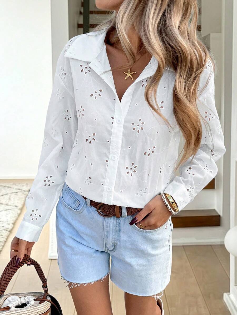Composición: 100% softpoliéster (simil algodón). Esta camisa casual en color blanco está confeccionada en tela tejida y destaca por su diseño liso, ideal para el uso diario. Presenta corte normal, manga larga hasta la muñeca y hombros caídos, lo que brinda un estilo relajado y suelto, perfecto para quienes buscan comodidad sin perder elegancia. Incluye detalles de botones y bordado de ojal, con cuello camisero clásico. Es semitransparente, no lleva forro ni bolsillos, y su mantenimiento es muy sencillo ya que se puede lavar en lavadora o con limpieza en seco profesional. Ideal para looks frescos y versátiles durante todo el año.