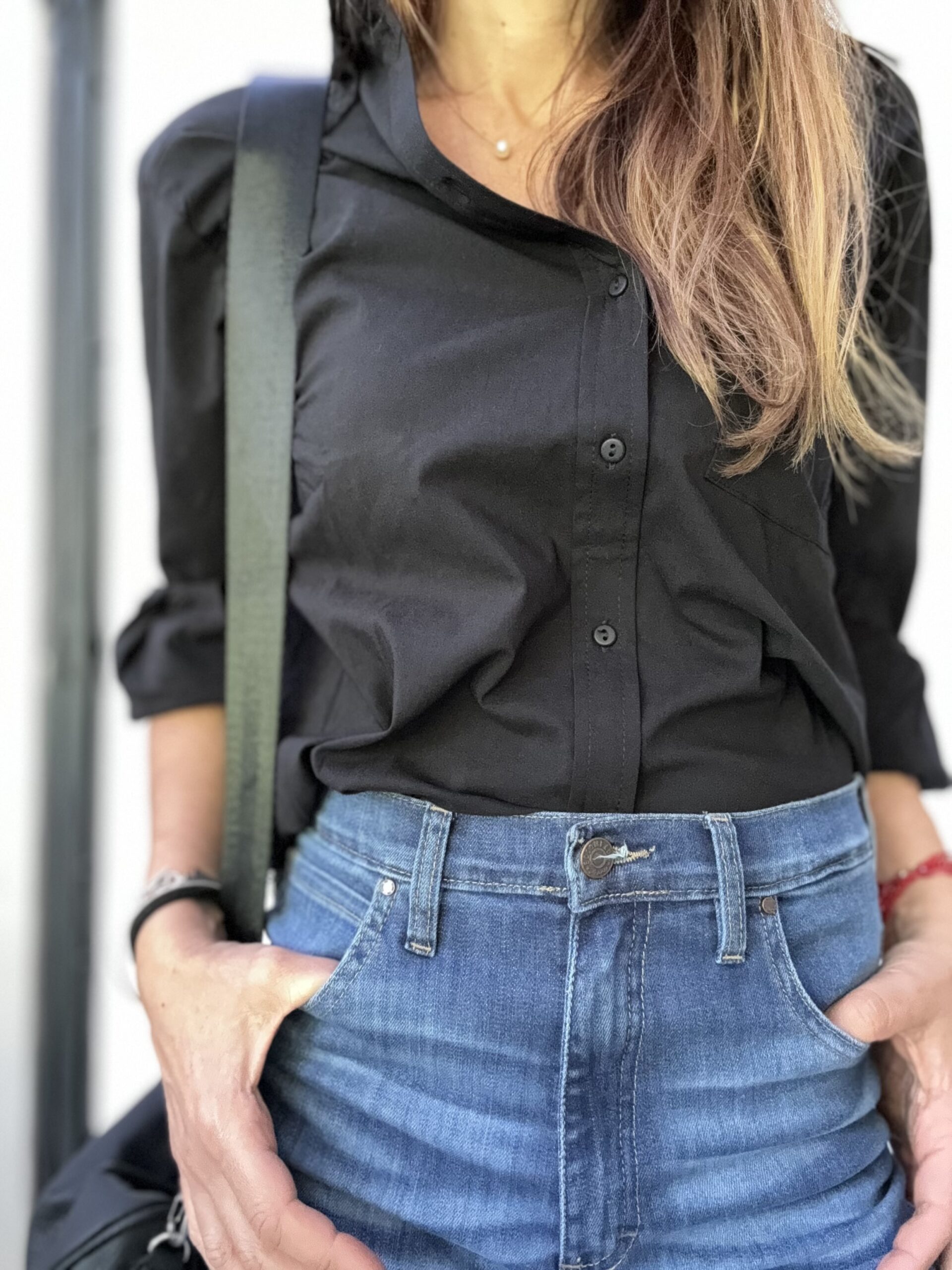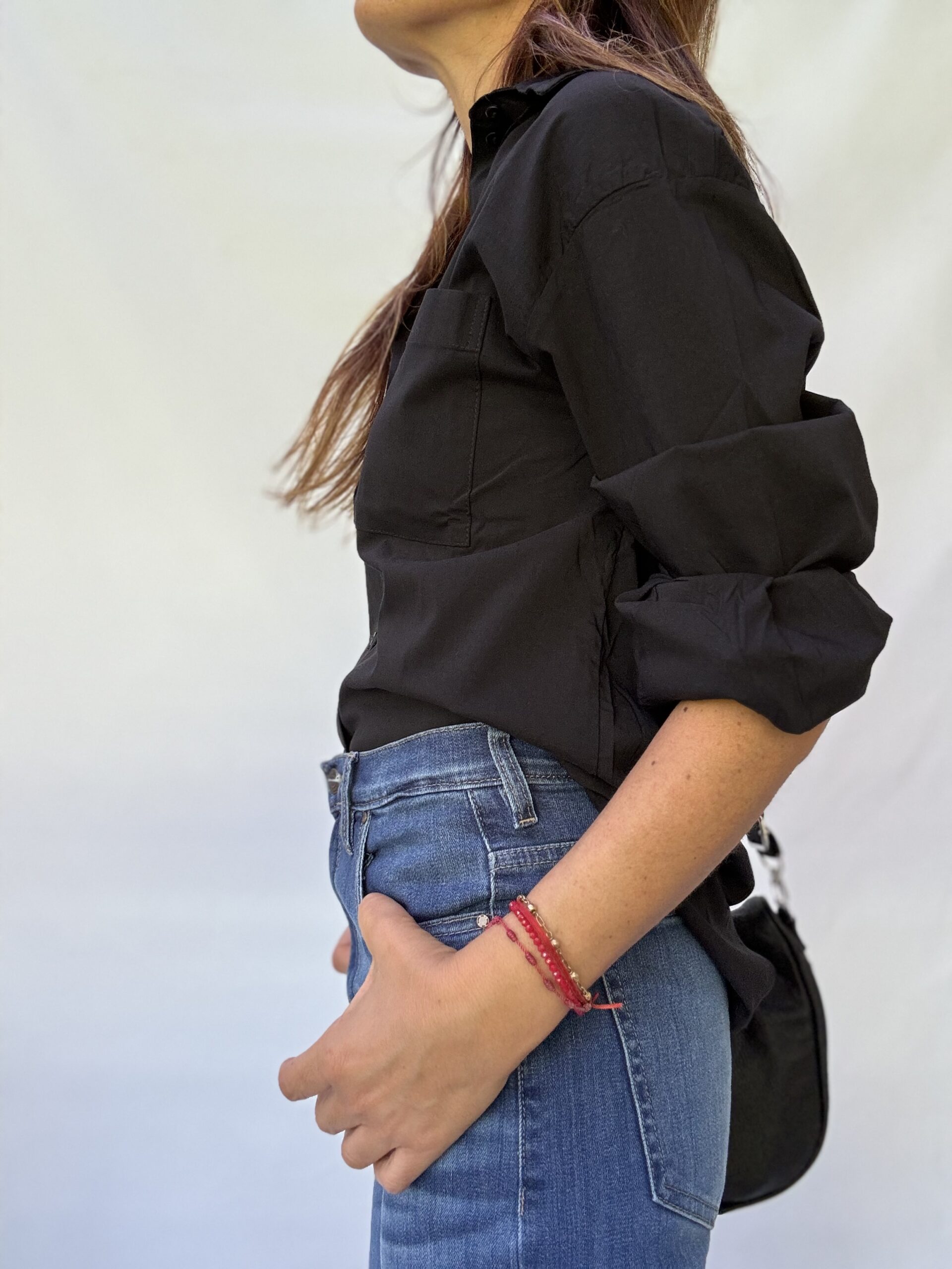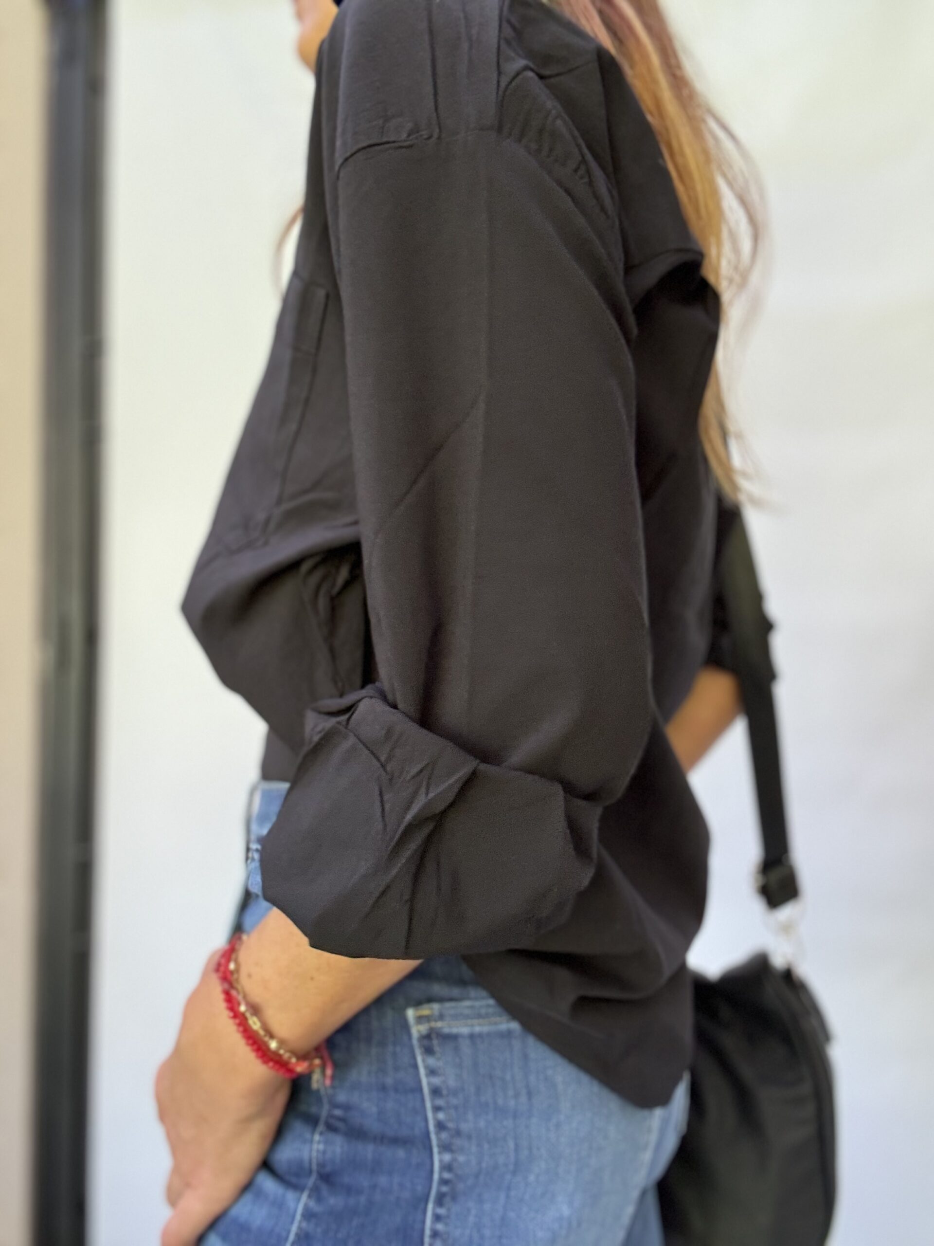 Camisa confeccionada en poplin con spandex. Bolsillo delantero. Modelo al cuerpo.