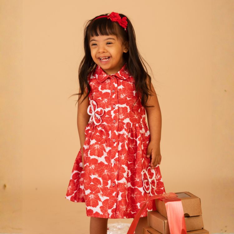 Vestido de niña flores rojas con detalle de flores realizado a mano. Diseñado en tela de alta calidad y un diseño pensado para acompañar a tu niña en cada paso. Confeccionado en tela 100% algodon.