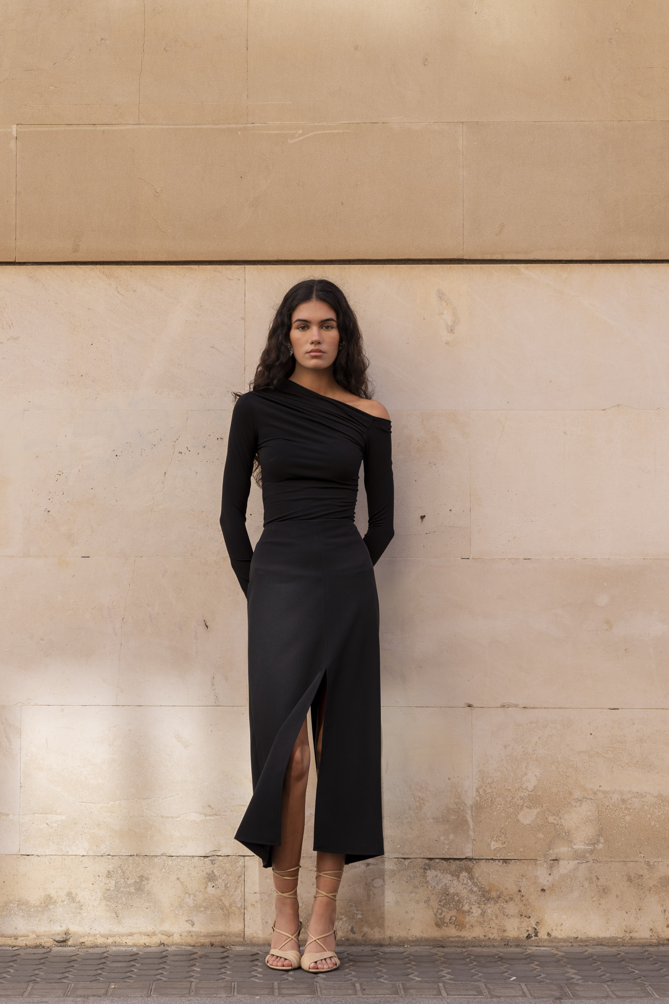 Camiseta asimétrica negra 95% poliester 5% elastano