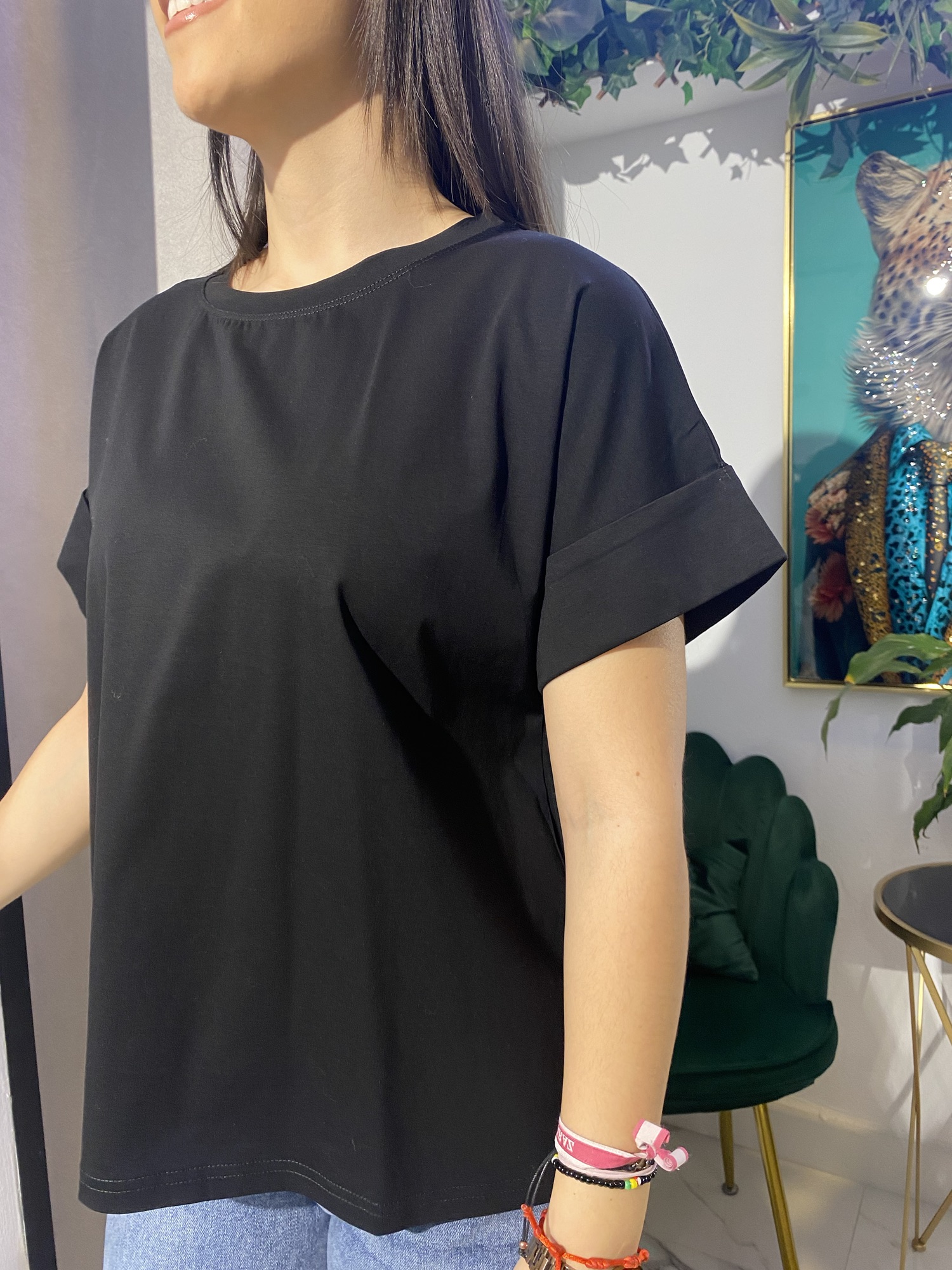 Una camiseta de raso básica es una prenda versátil y elegante que combina la sencillez de una camiseta clásica con el brillo sutil y la suavidad del raso. Es perfecta para añadir un toque de sofisticación a cualquier look, ya sea para ocasiones casuales o más arregladas.