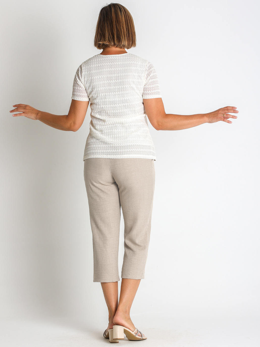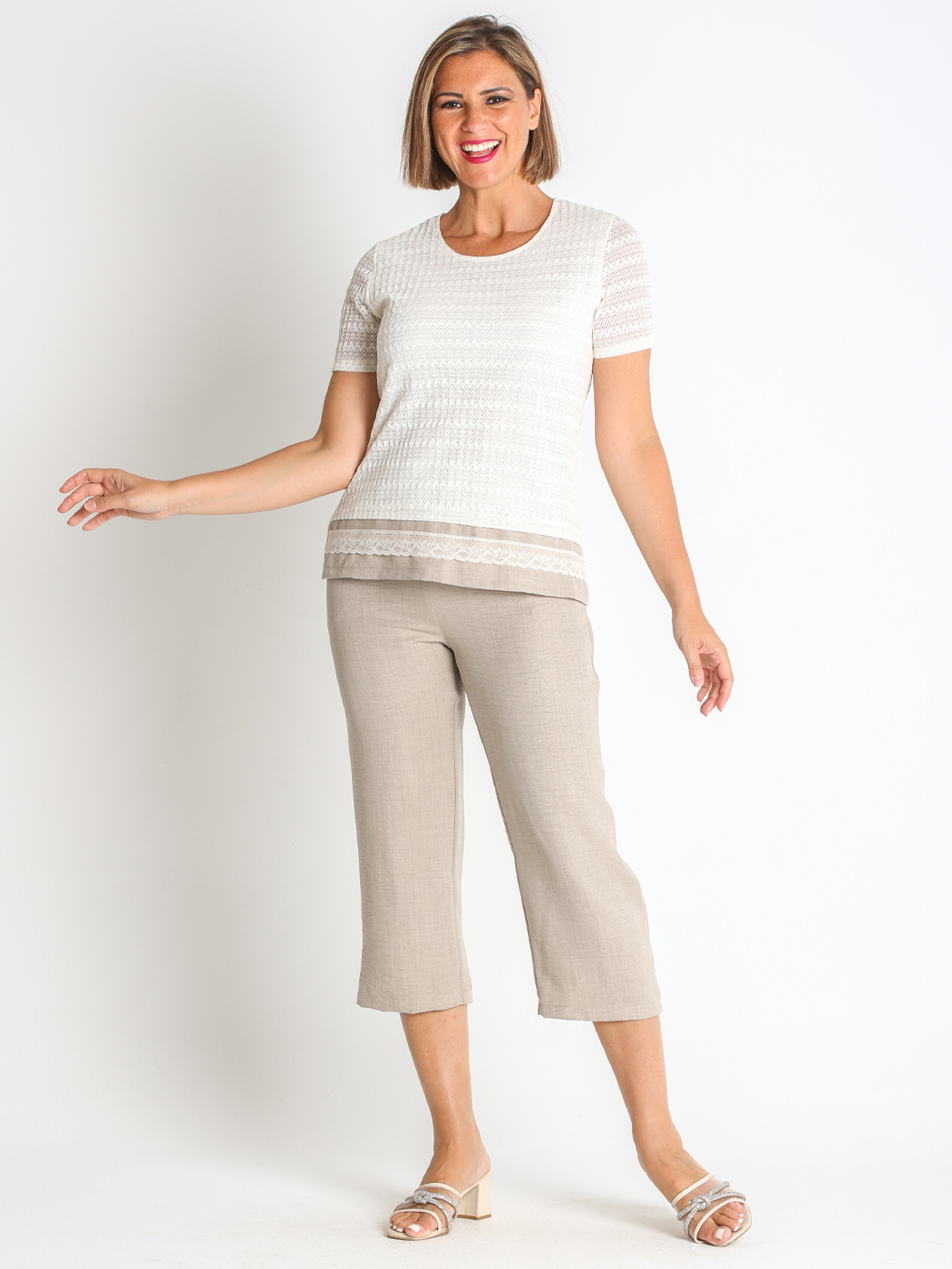 Camiseta fabricada en punto calado con blonda. Prenda suave y muy cómoda.