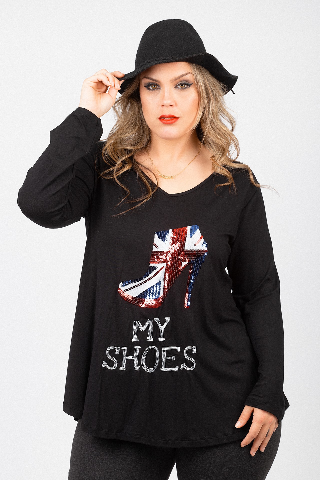 Camiseta «my shoes» de manga larga para mujer plus size.