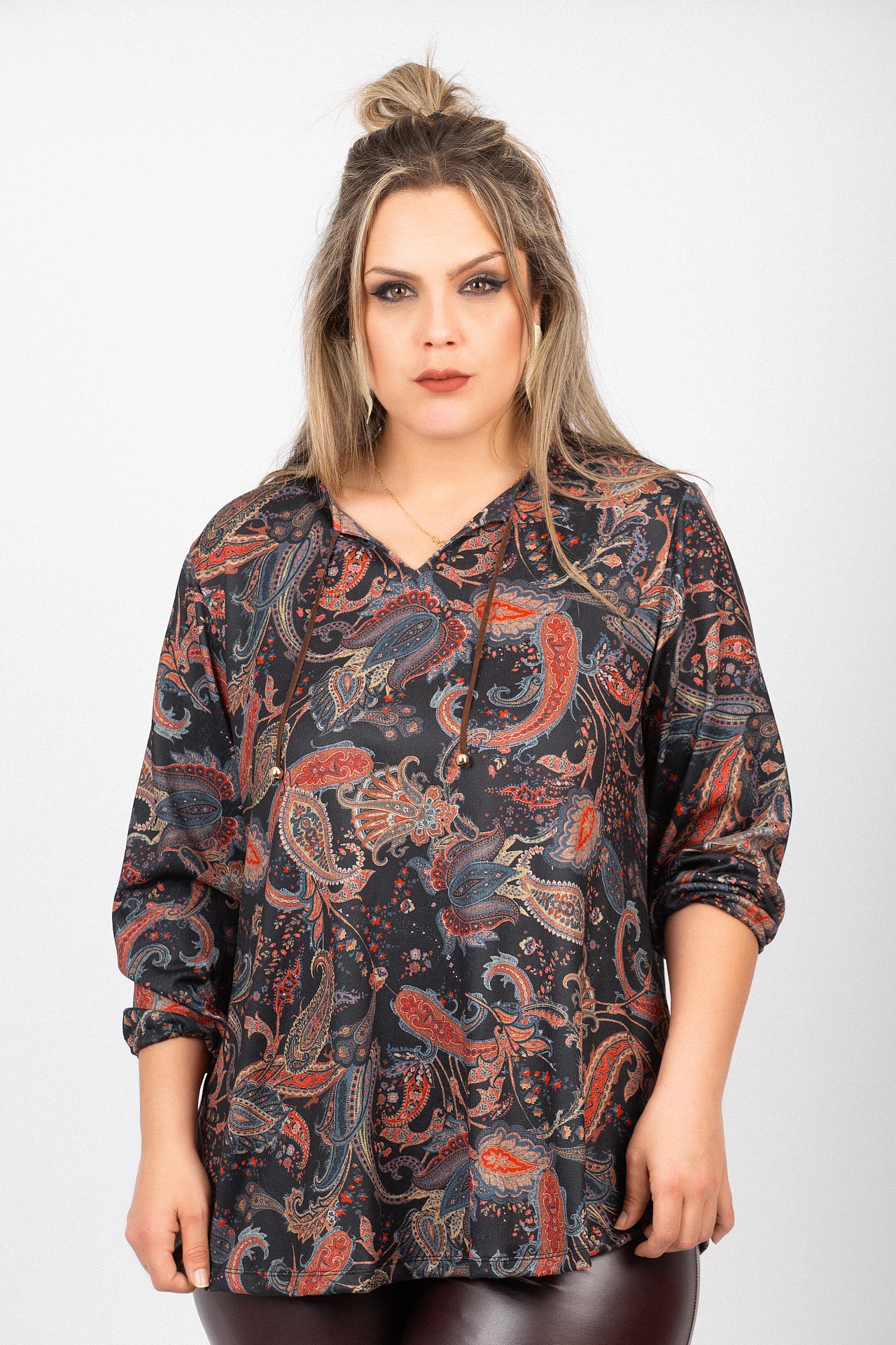 Camiseta con tejido estampado pasword con manga larga y cordón en cuello.