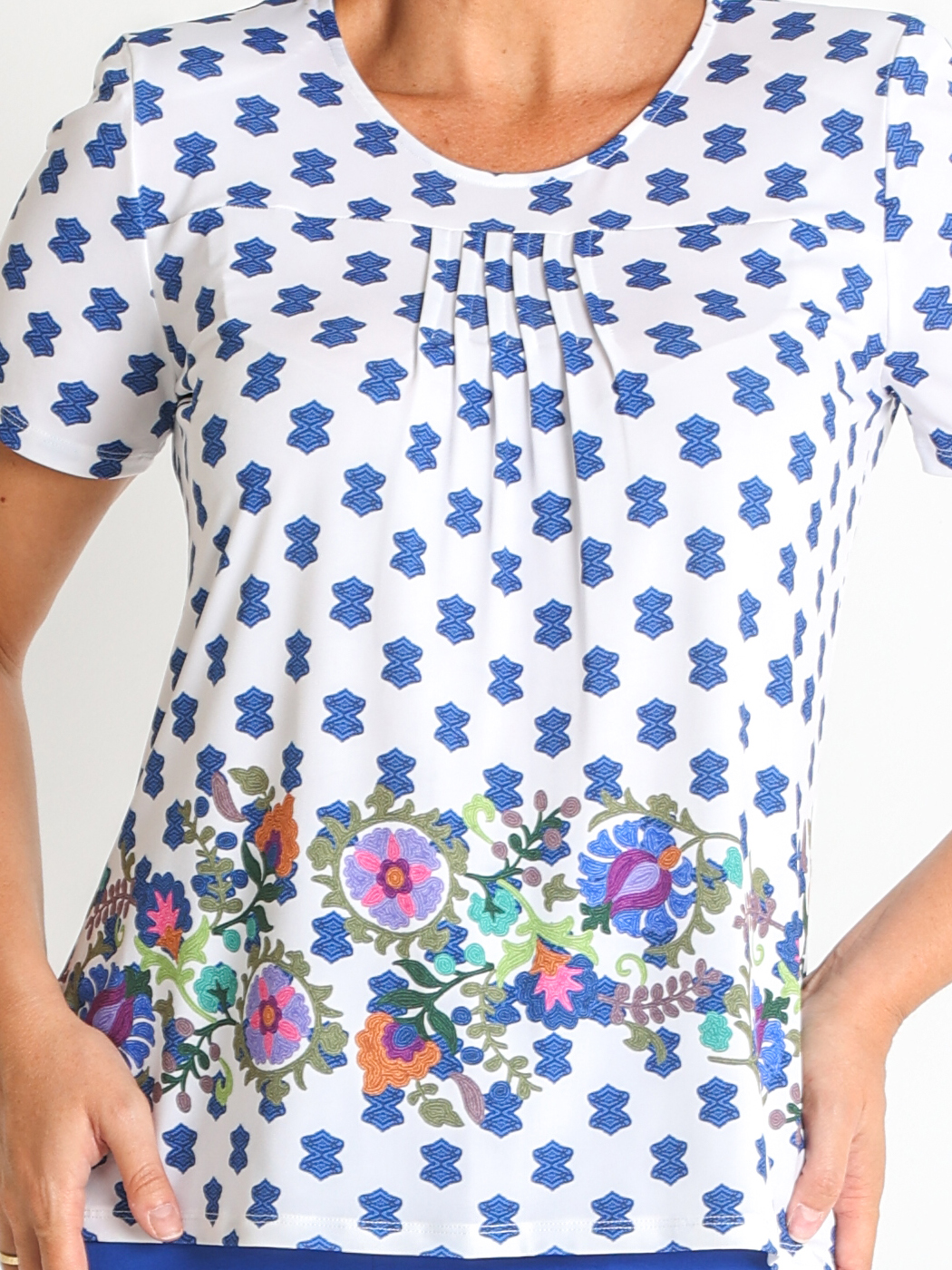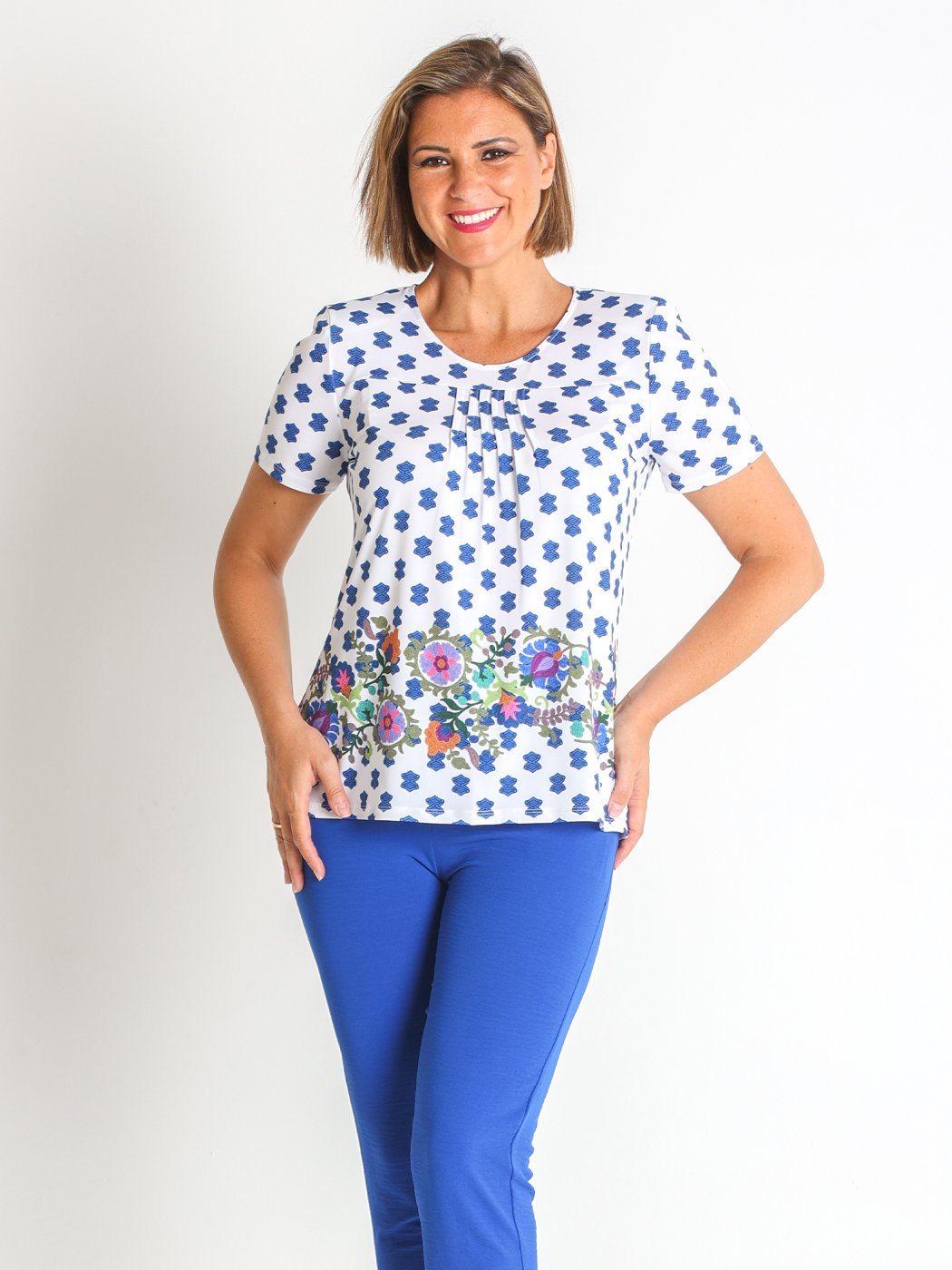 Camiseta fabricada en punto estampado; tejido suave y elástico para una mayor comodidad.