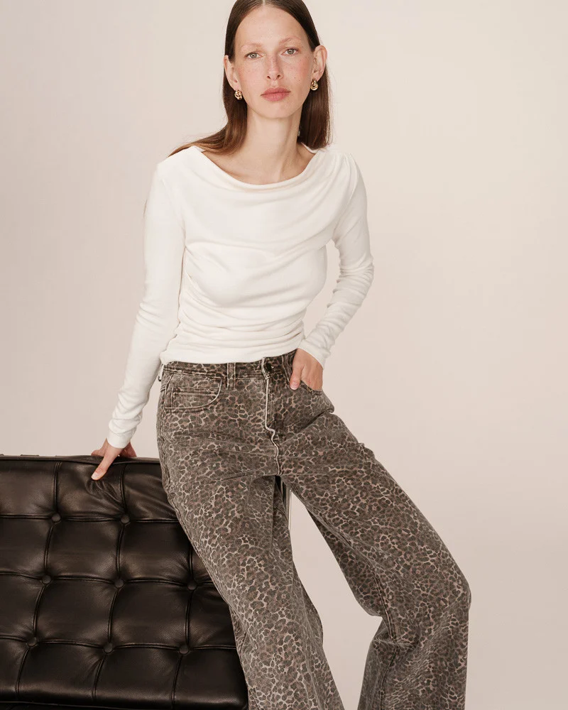 La camiseta de manga larga SIOUX presenta líneas limpias y minimalistas que crean una silueta moderna. El corte ajustado se realza con un drapeado asimétrico en cintura y hombros, creando un elegante juego de movimiento. La camiseta drapeada SIOUX presenta un escote barco y un corte ajustado que realza la silueta.