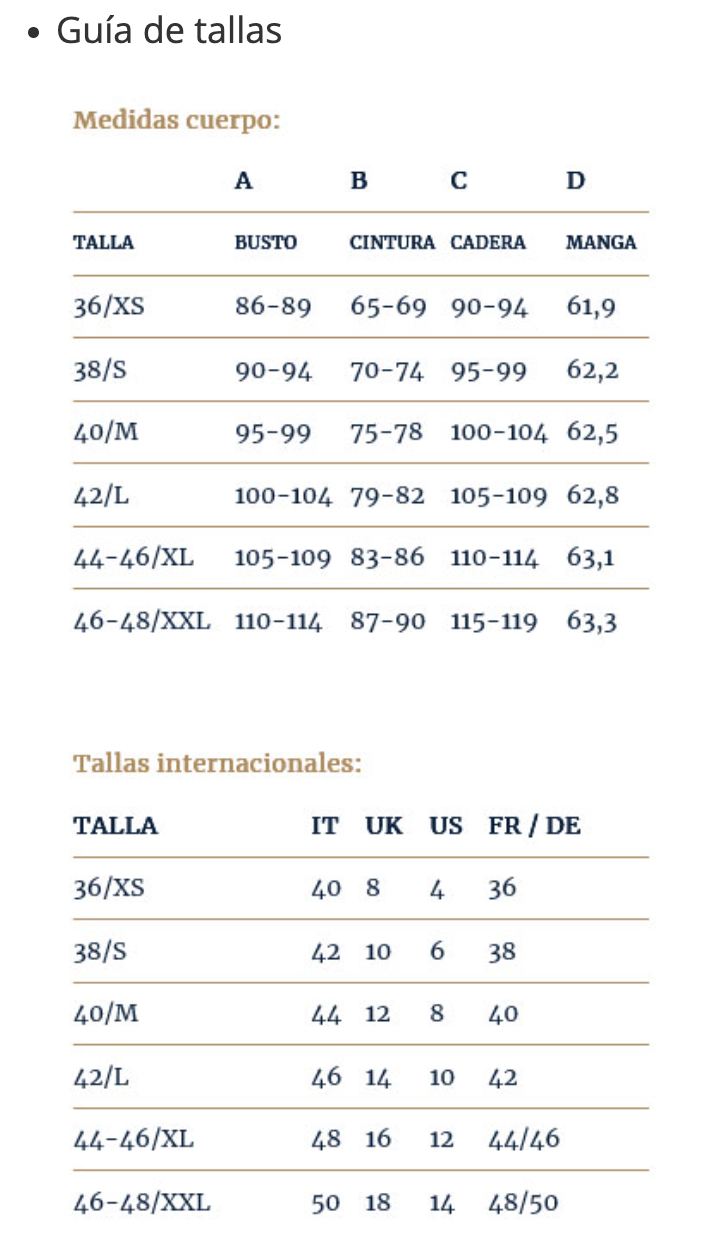 Guía de tallas