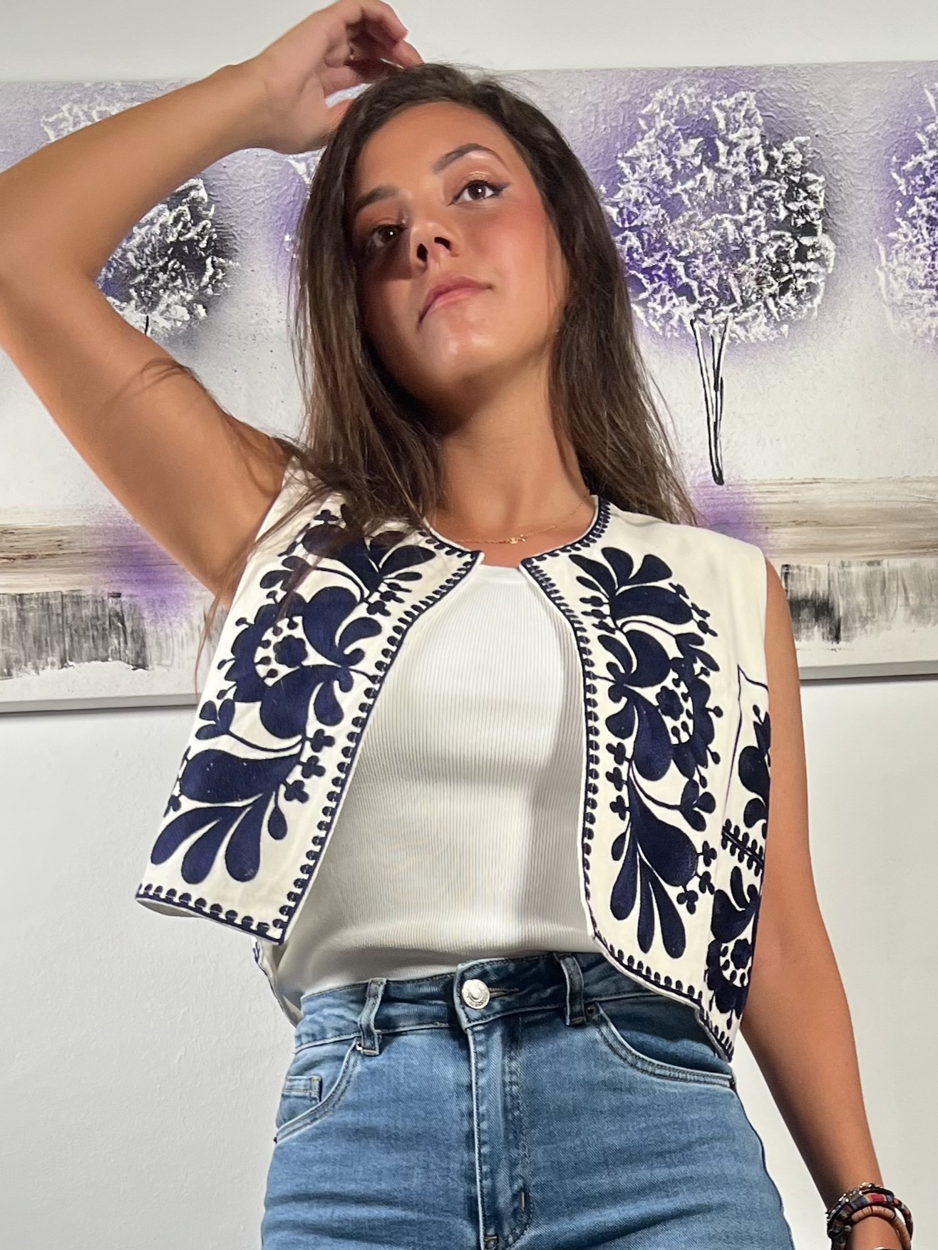 Descubre la majestuosidad de nuestro Chaleco Imperio, una pieza de elegancia y distinción que redefine el concepto de estilo. Confeccionado en puro algodón de la India de calidad extrema, este chaleco es más que una prenda, es una obra maestra que refleja la artesanía y la exquisitez.