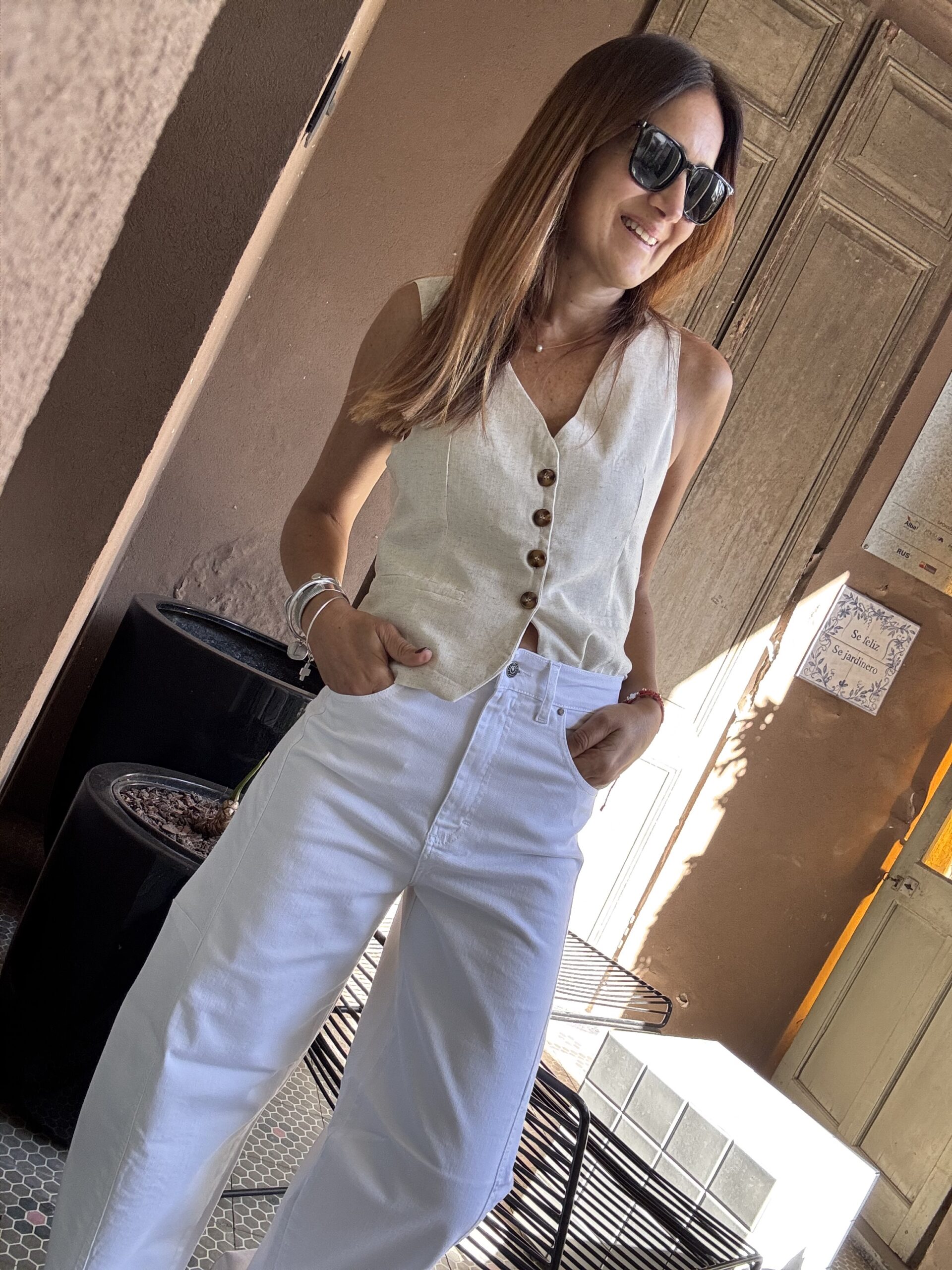 Modelo super elegante y canchero al mismo tiempo.   Combina con blazer lino y sastrero lino.