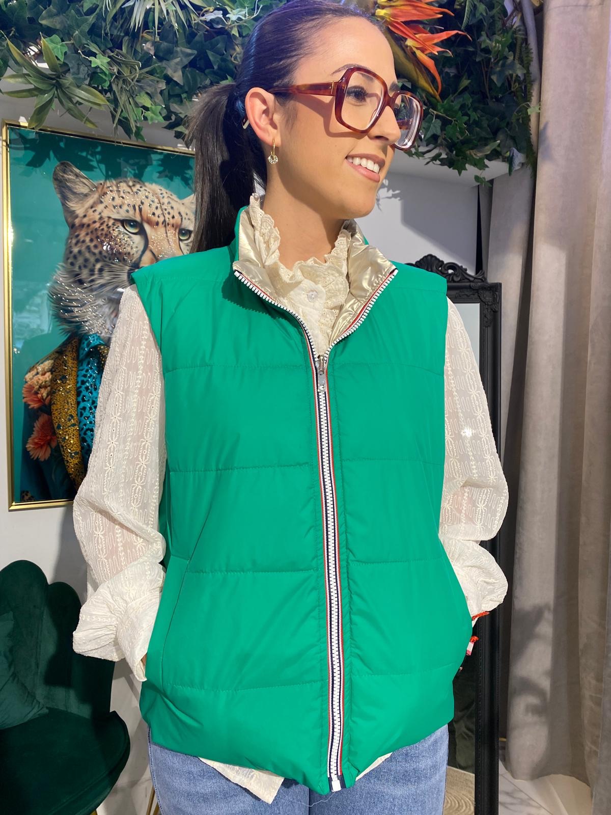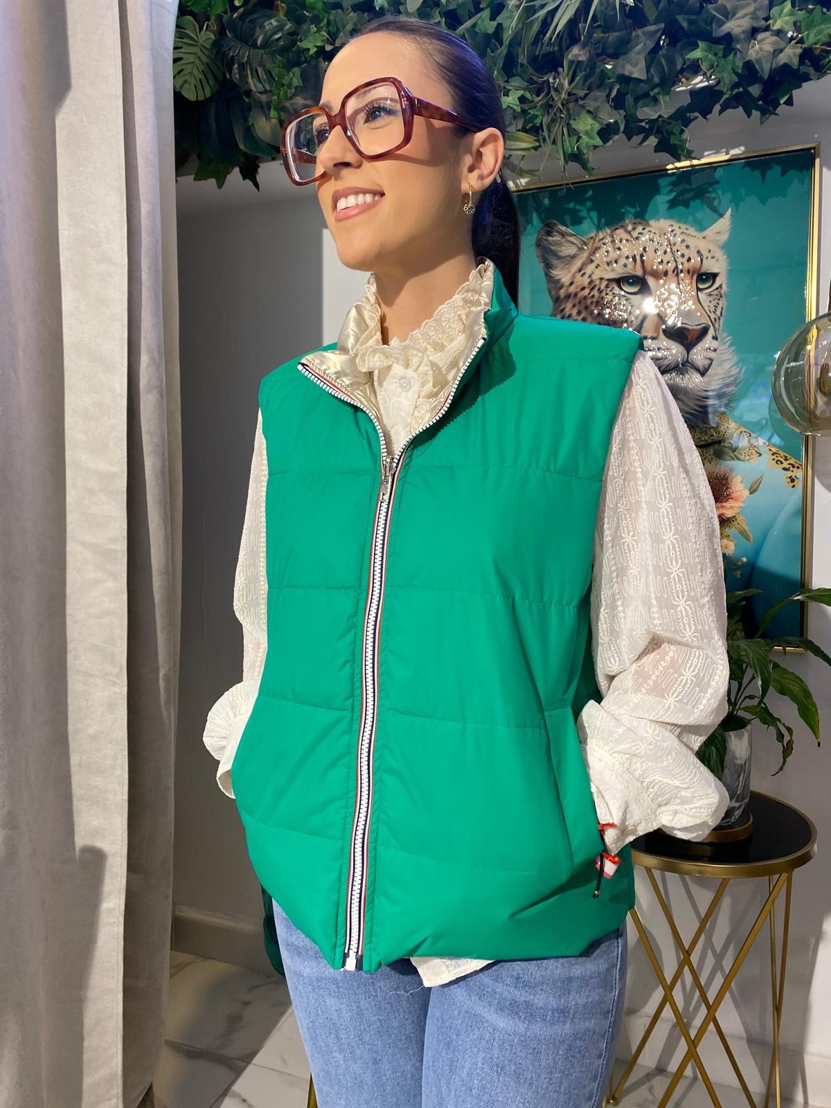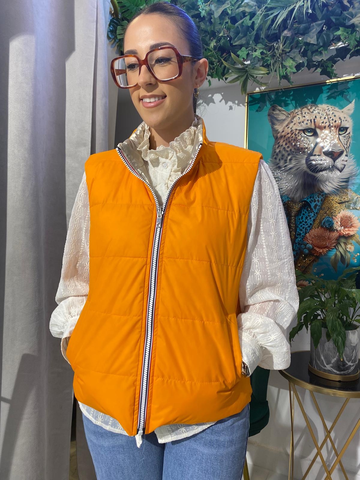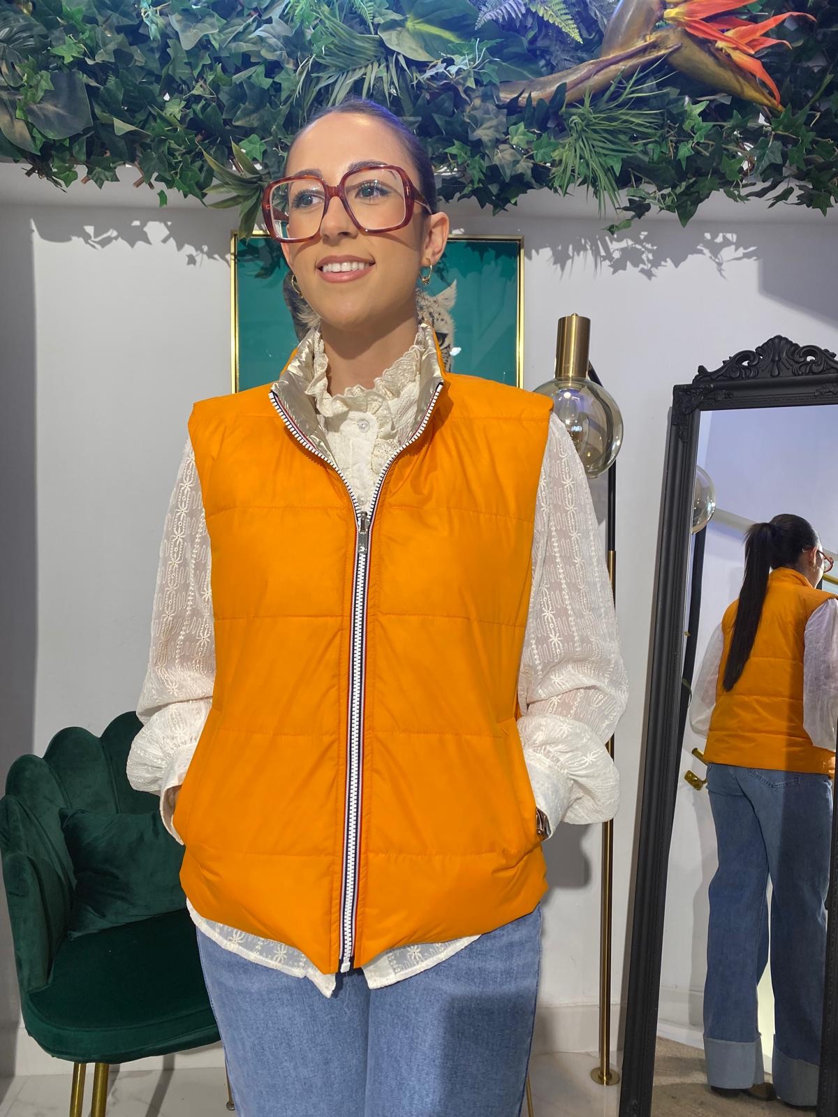 Este chaleco reversible satinado es la prenda perfecta para un look moderno y versátil. Su diseño reversible y el acabado brillante la hacen ideal para cualquier ocasión, desde un día casual hasta una salida nocturna.