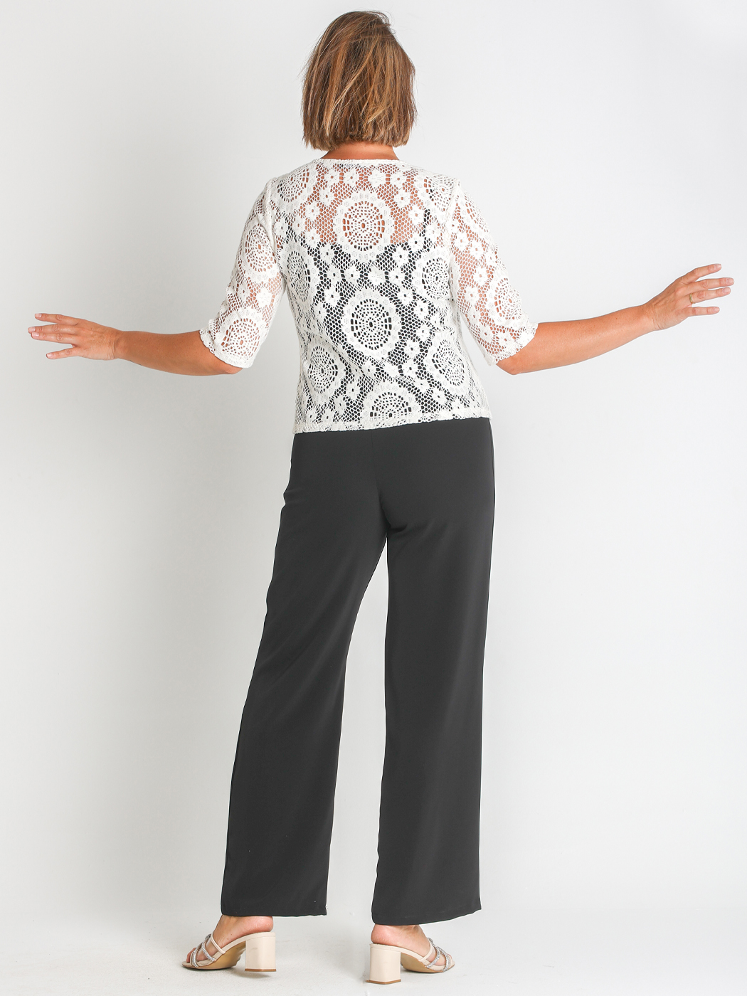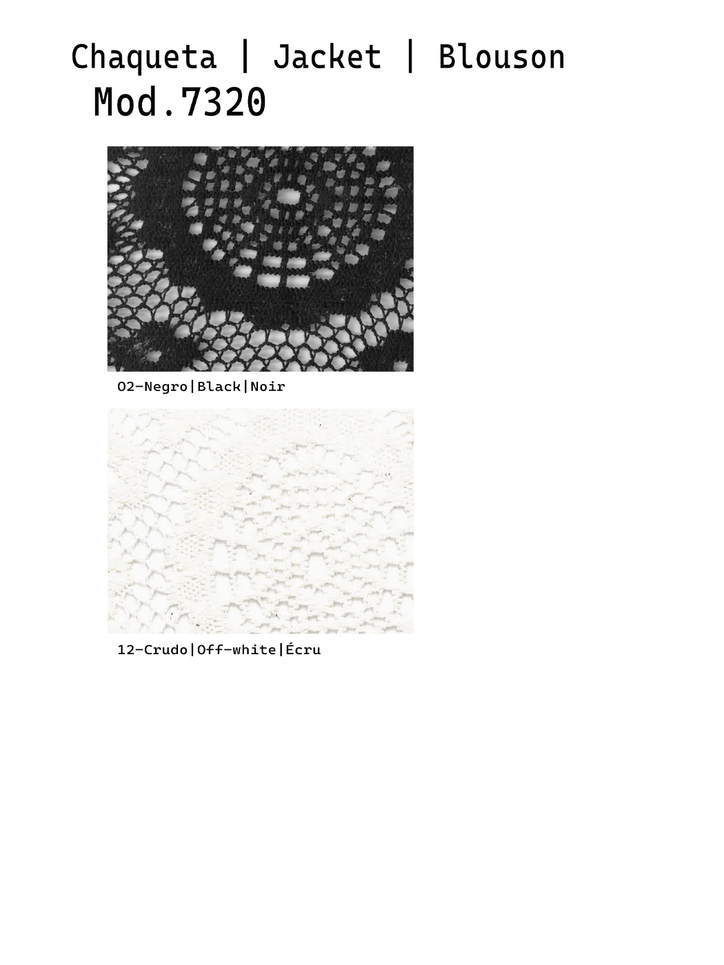 Chaqueta fabricada en punto calado con blonda, tejido suave y muy cómodo. Mangas 3/4.