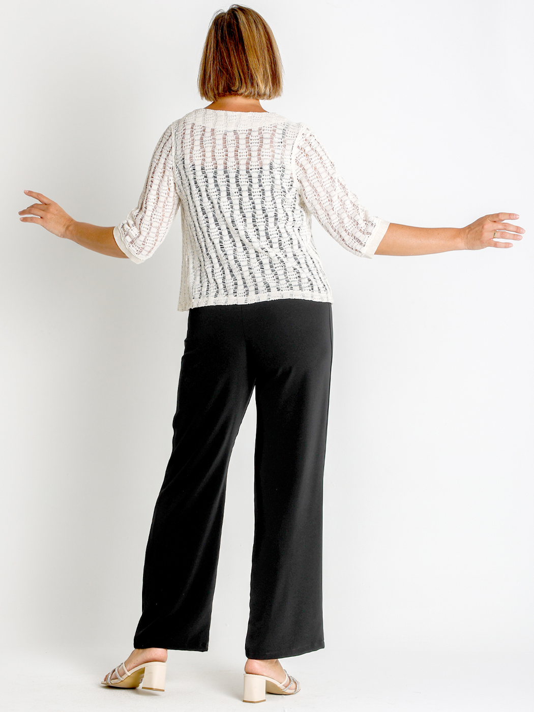 Chaqueta fabricada en tejido de punto calado, tejido suave y ligeramente elástico para una mayor comodidad.
