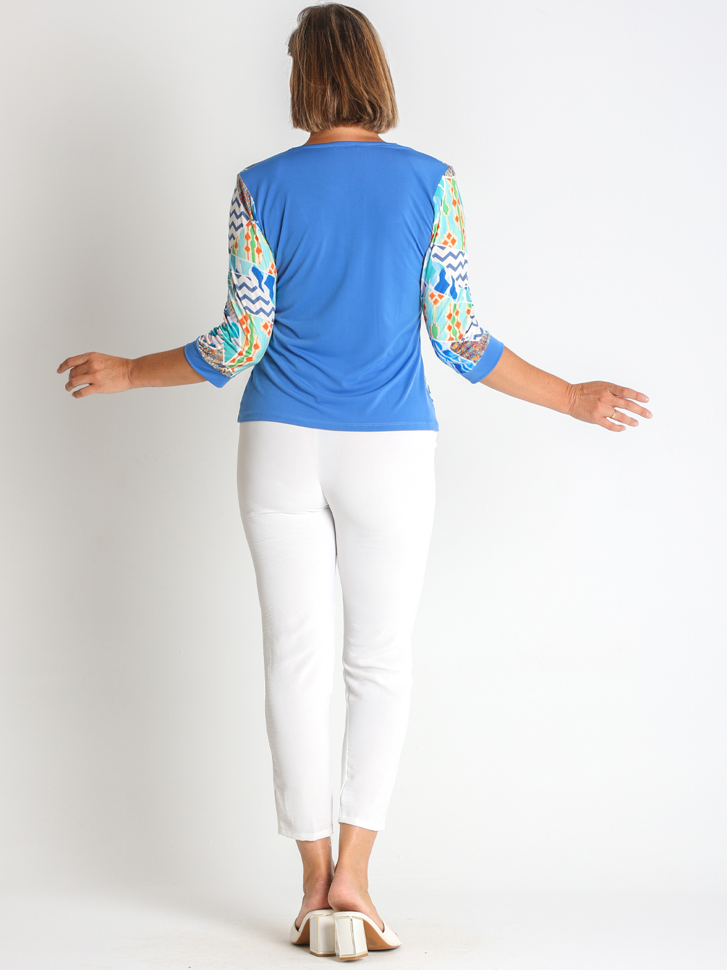 Chaqueta fabricada en punto combinando estampado y liso. Prenda fluida y elástica para mayor comodidad.
