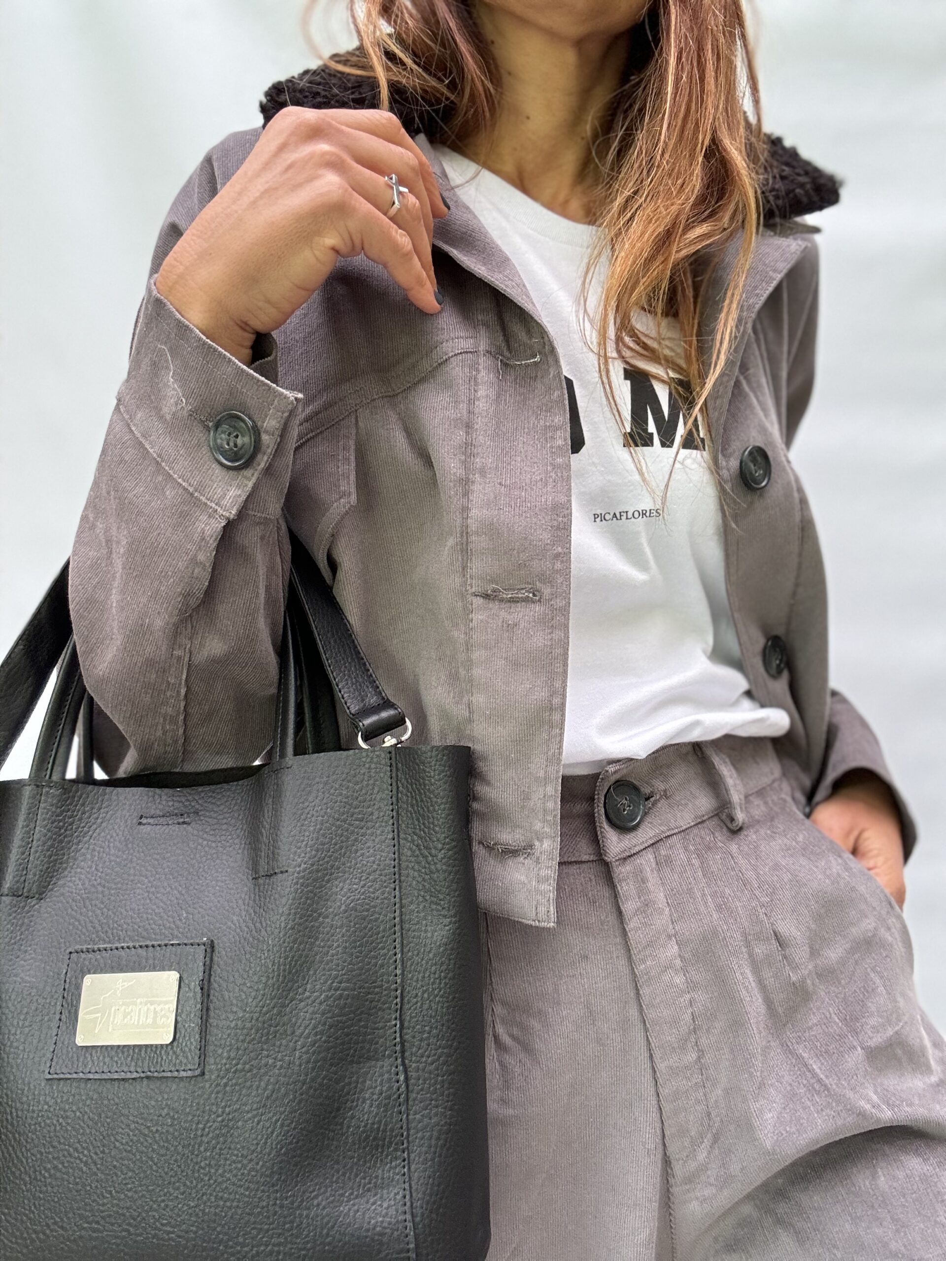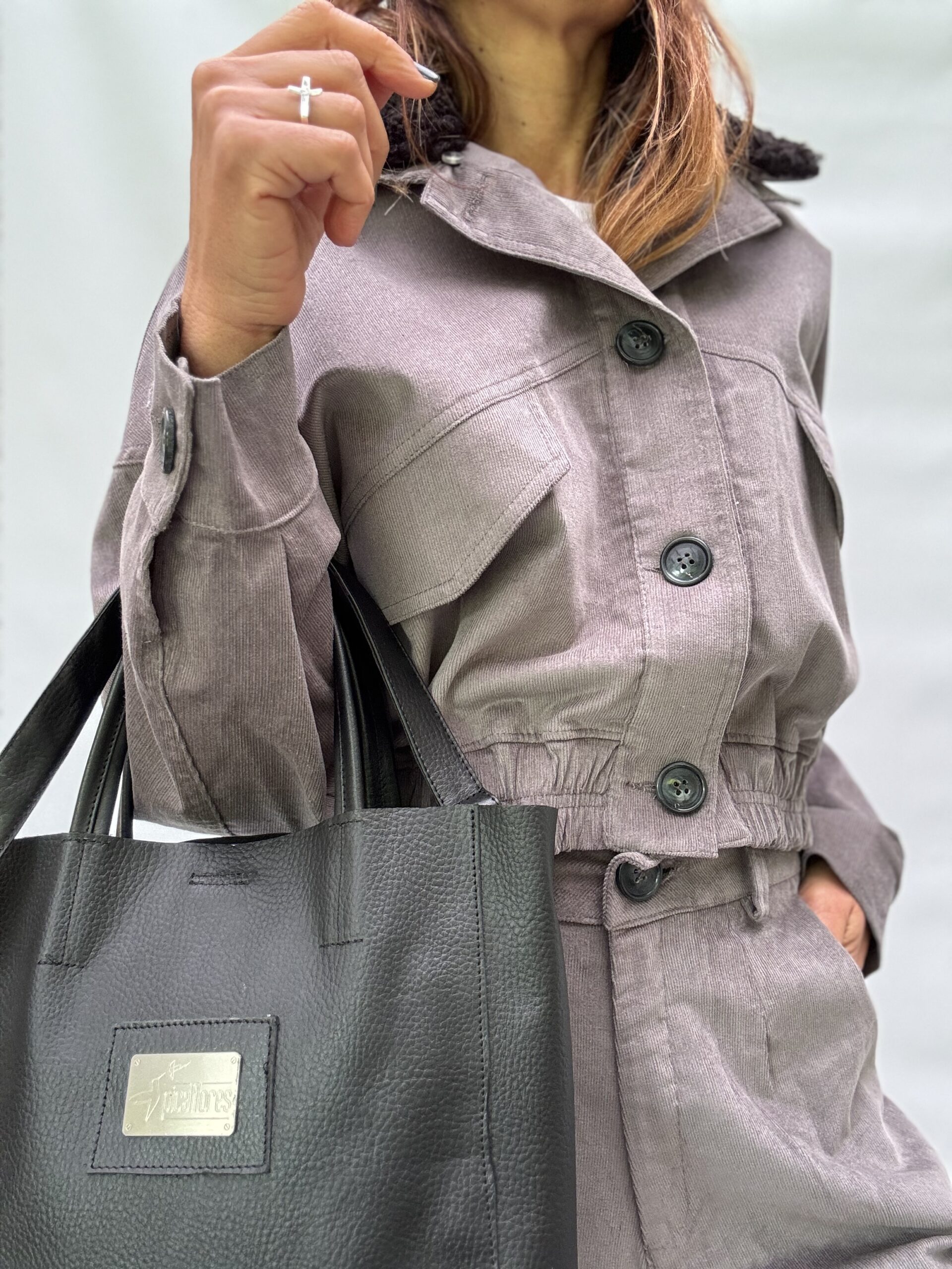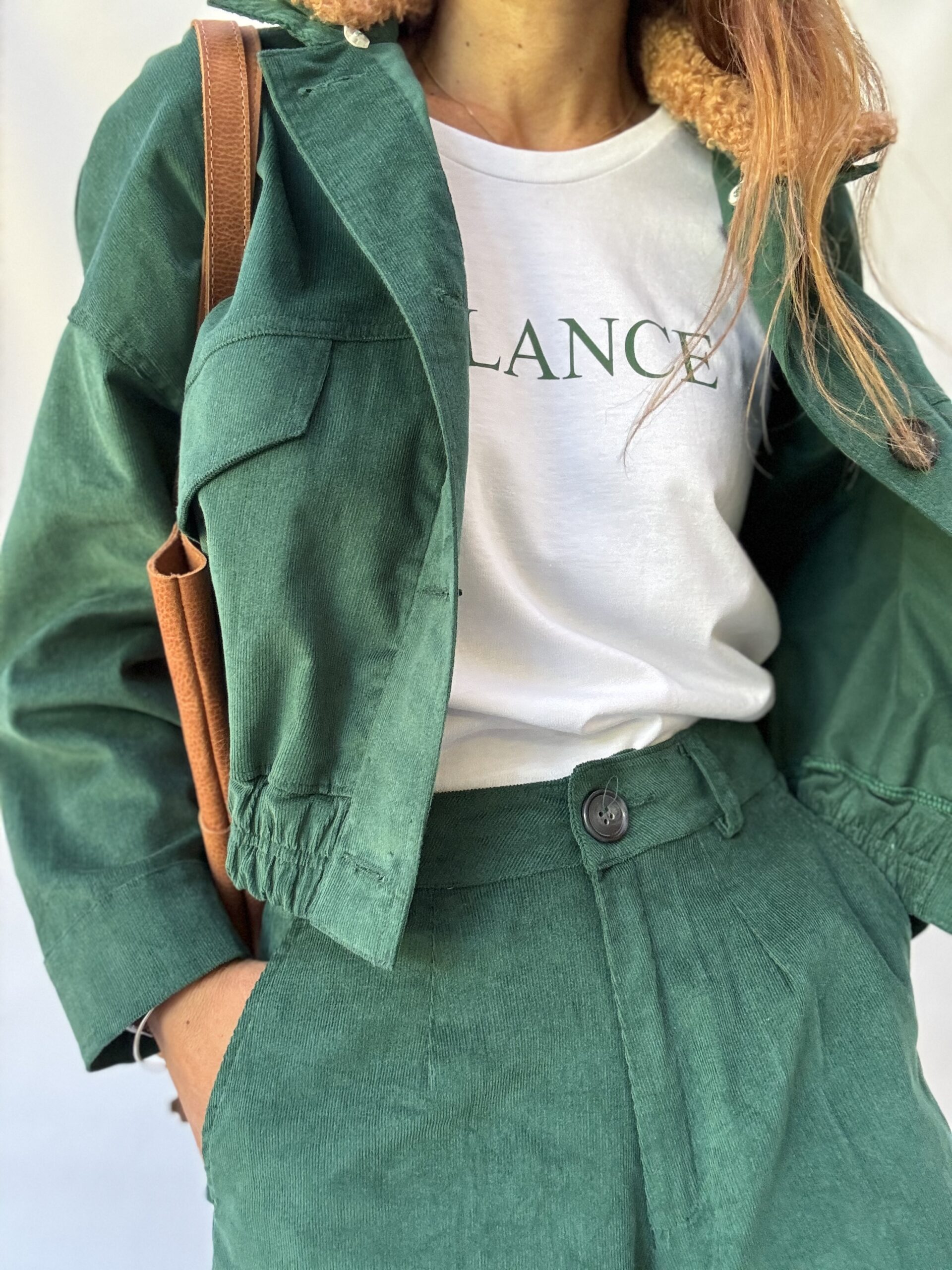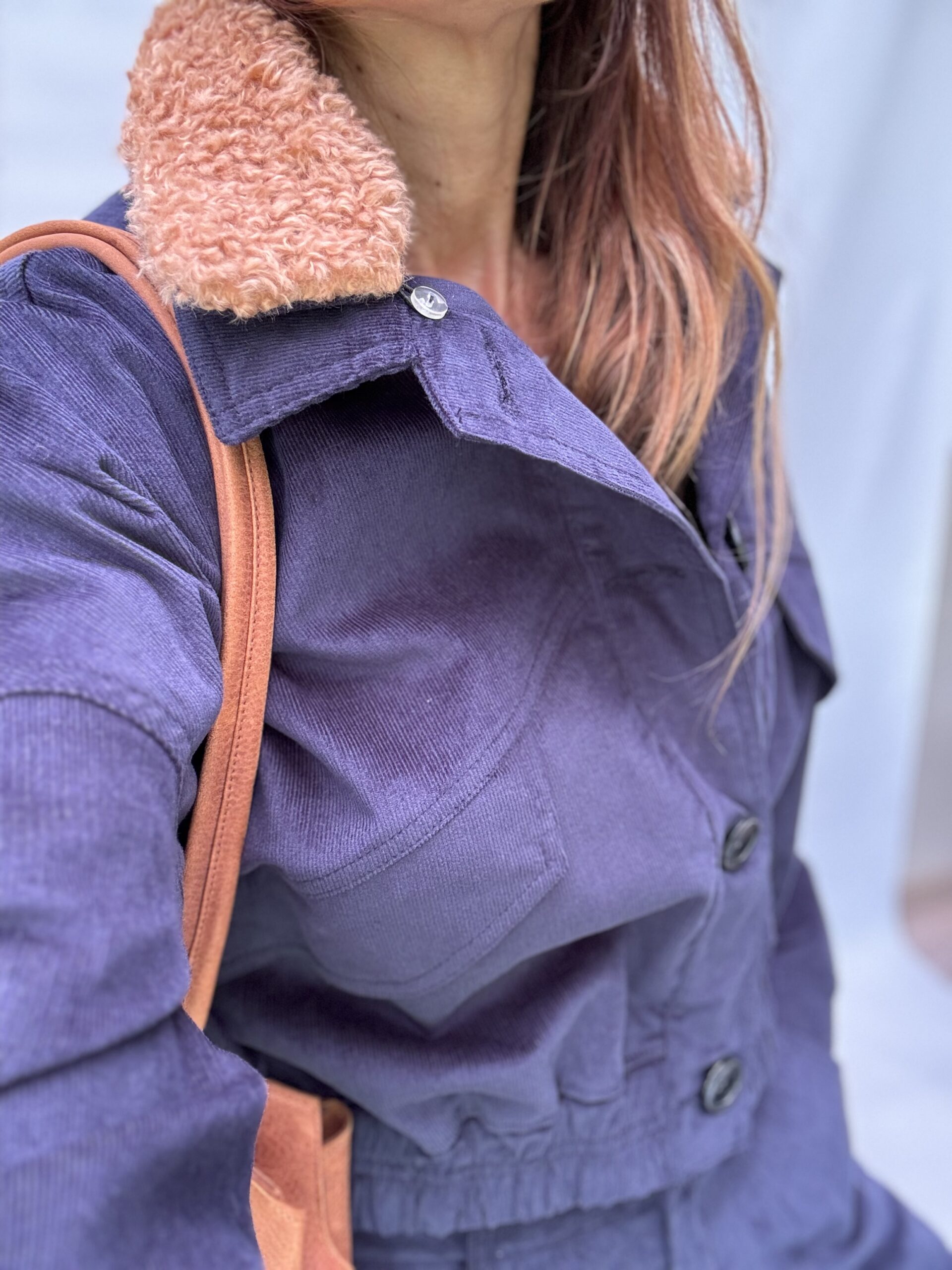 -Chaqueta Viena: confeccionada en corderoy sutilmente elastizado, modelo oversized, cuello desmontable en buclé. Los bolsillos del frente tienen tapa. La cintura elastizada realza su silueta. Talle único