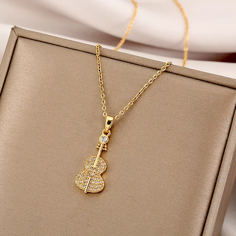 Diseño enchapado y embutido, color sólido, 1 pieza, elaborado en acero inoxidable 304 y cobre. El colgante es de cobre, la cadena de acero inoxidable 304, con revestimiento chapado en oro de 18 k e incrustaciones de acrílico, vidrio y circón