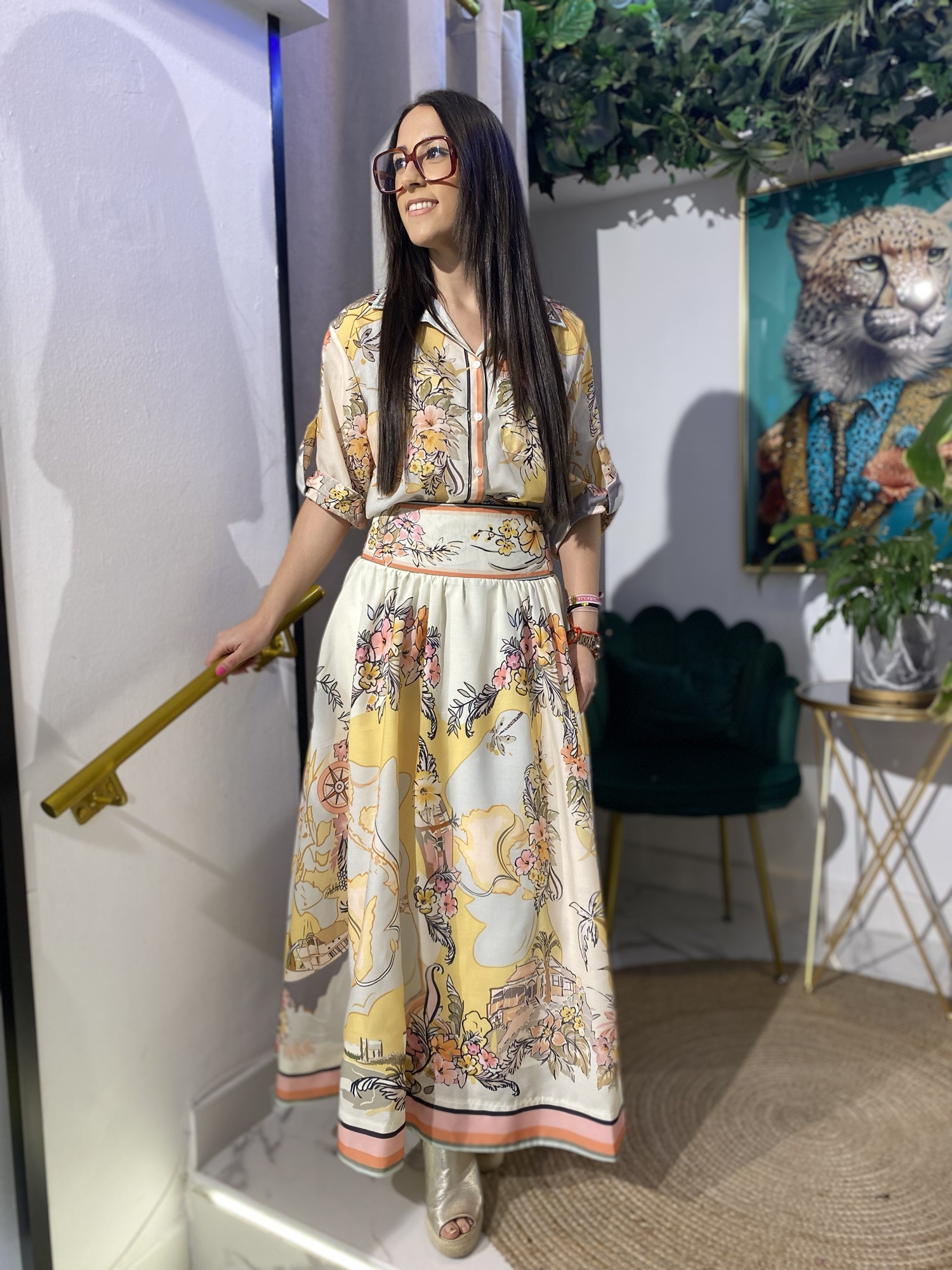 Un conjunto con falsa camisa de media manga es una opción moderna y versátil que simula el efecto de llevar una camisa debajo de otra prenda, pero con la comodidad de una sola pieza. Este tipo de conjunto es perfecto para crear looks casuales y elegantes con un toque original.