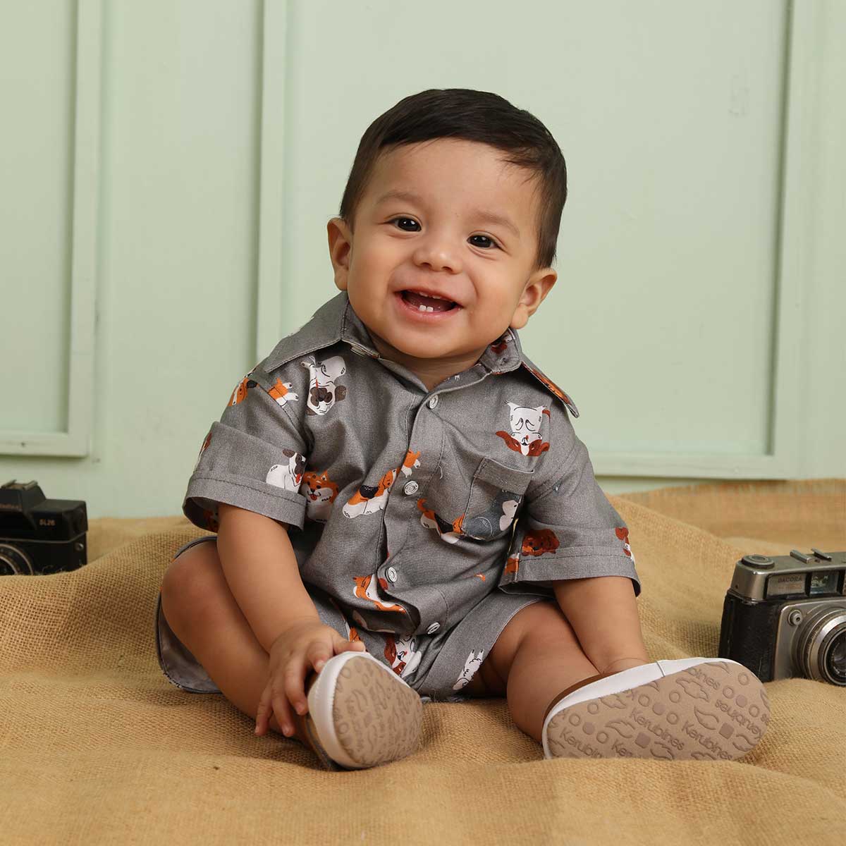 Entero de niño sublimado de perrito con bolsillo. Confeccionado en tela 100% algodon.