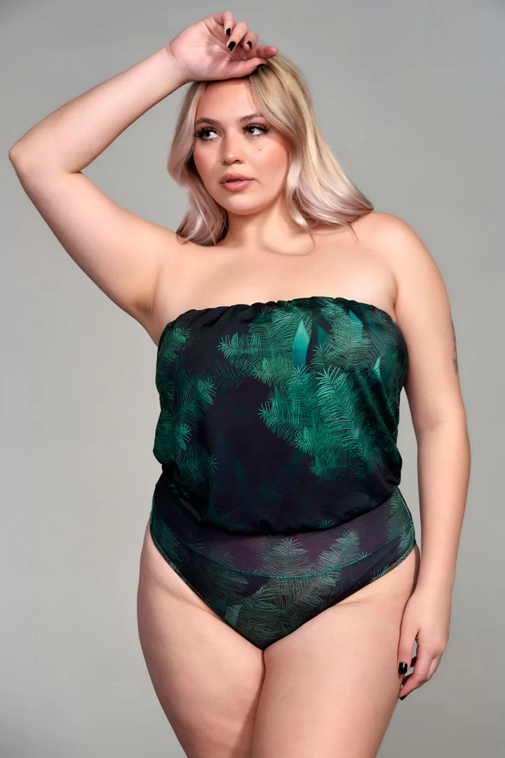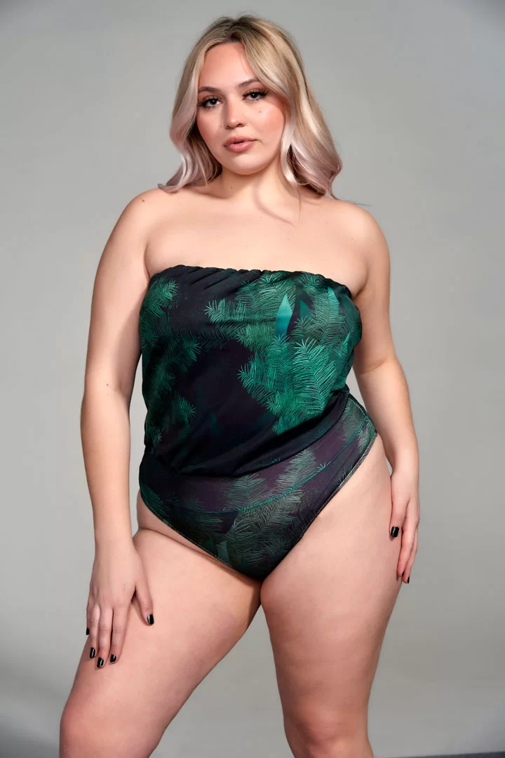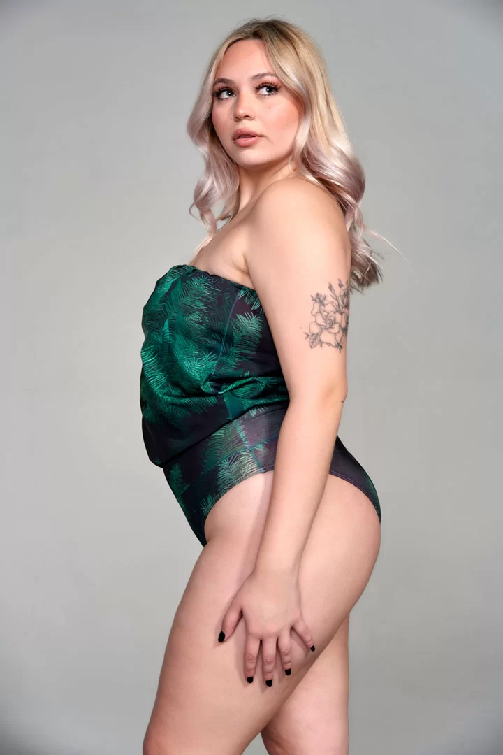 Traje de Baño enterizo, abuchonada a la cintura. Corpiño interno con bolsillo para relleno o taza. Estampada modelo EVA SELVATICA.