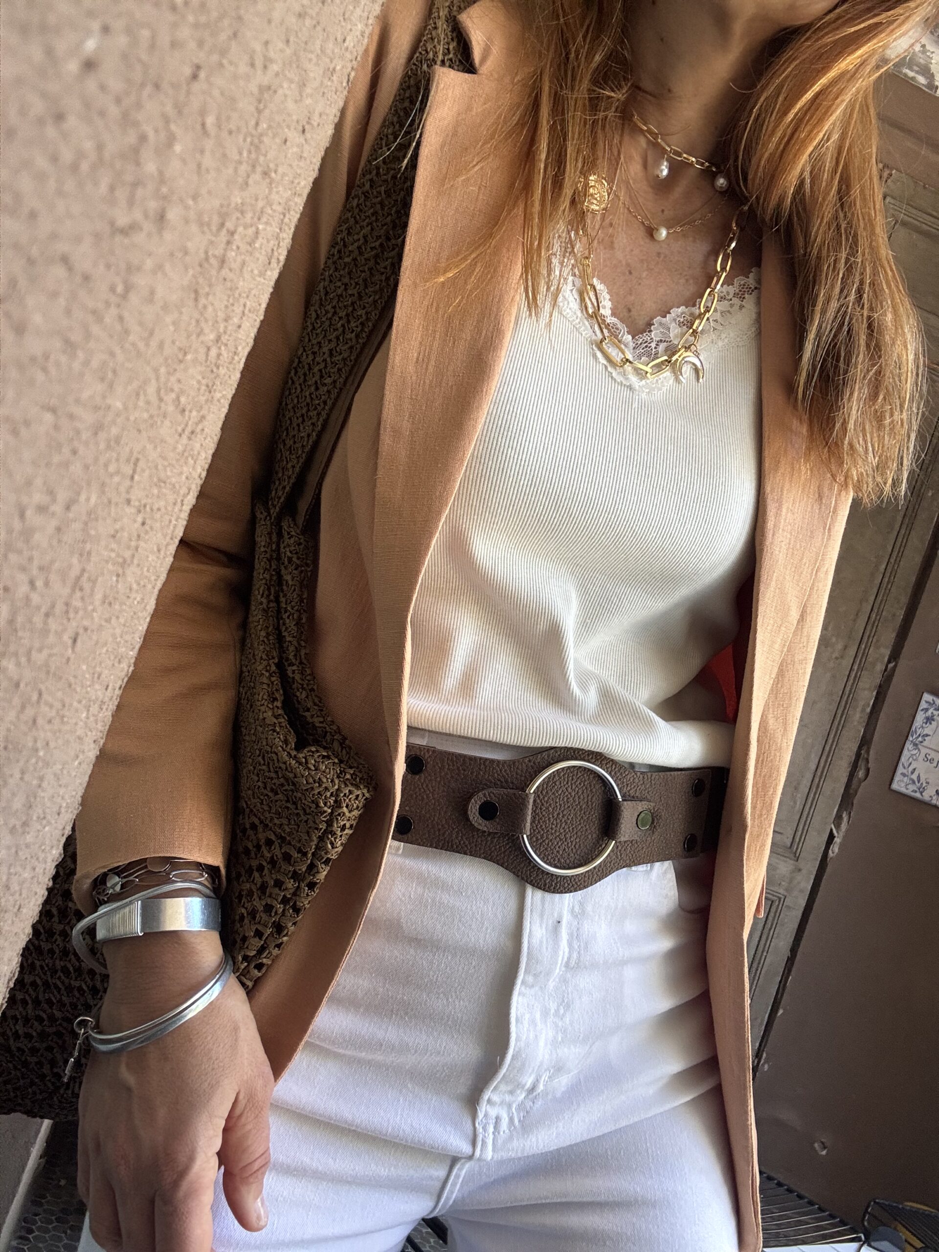 Faja de cuero con arandelas y tachas.
