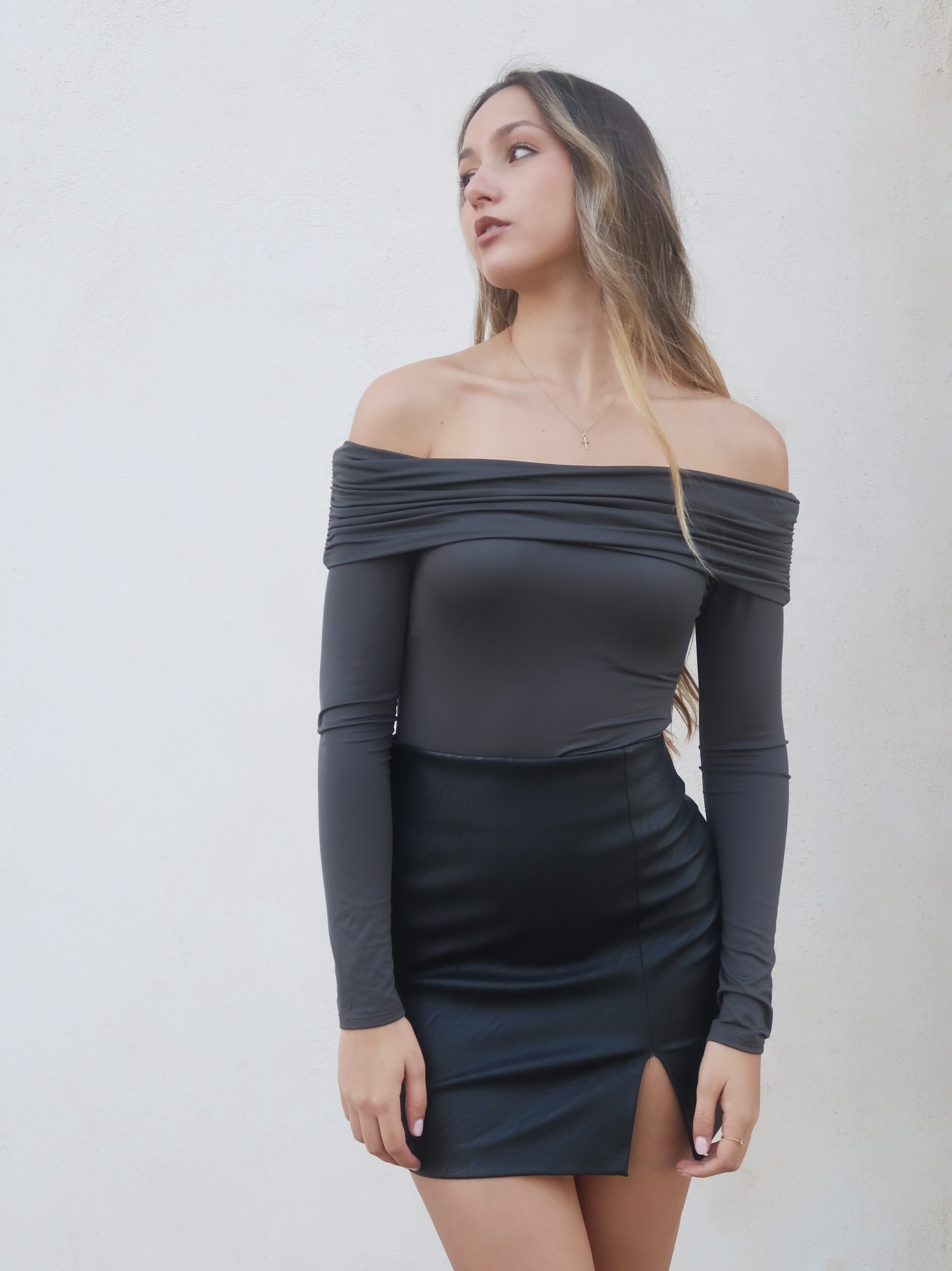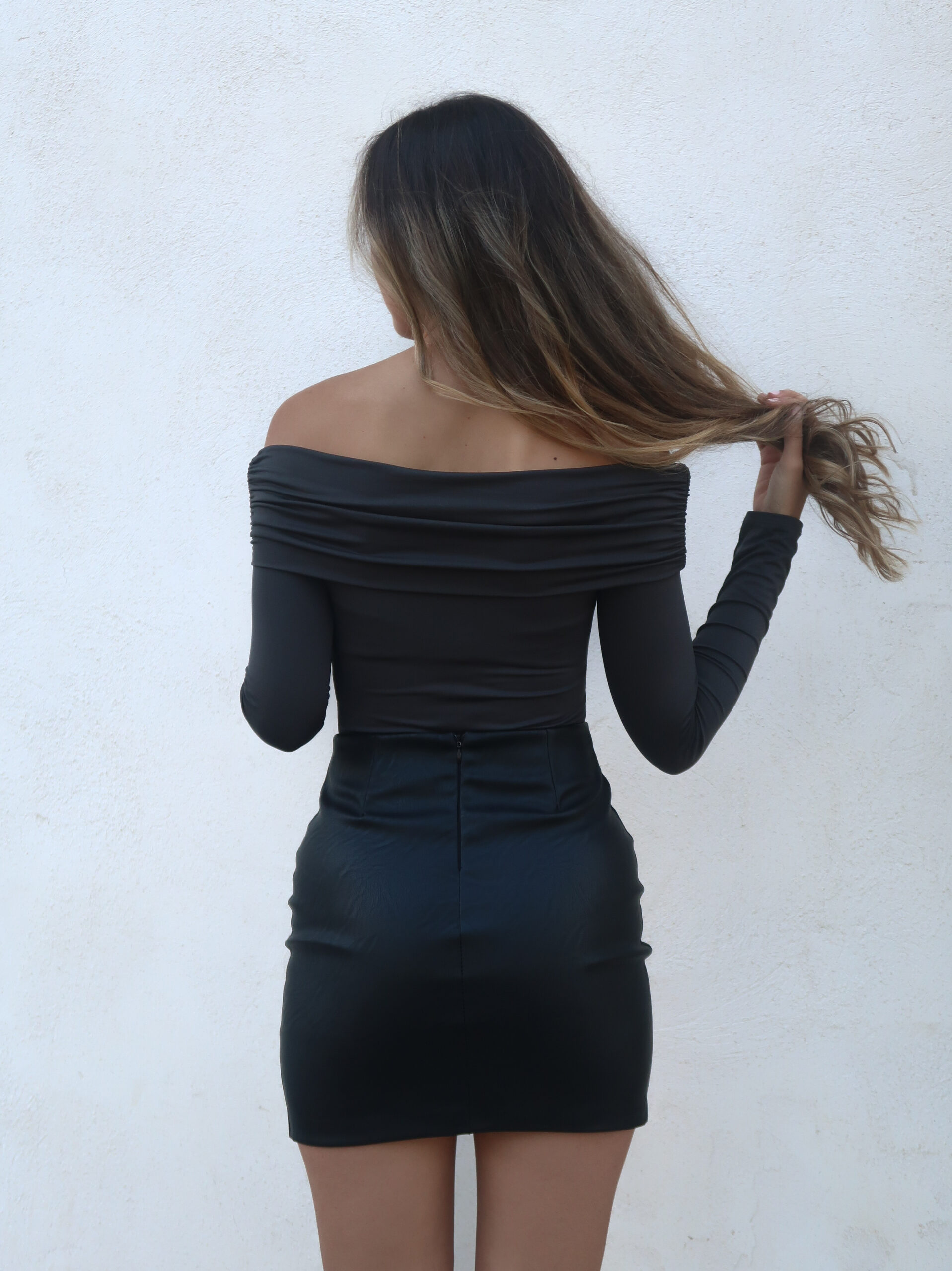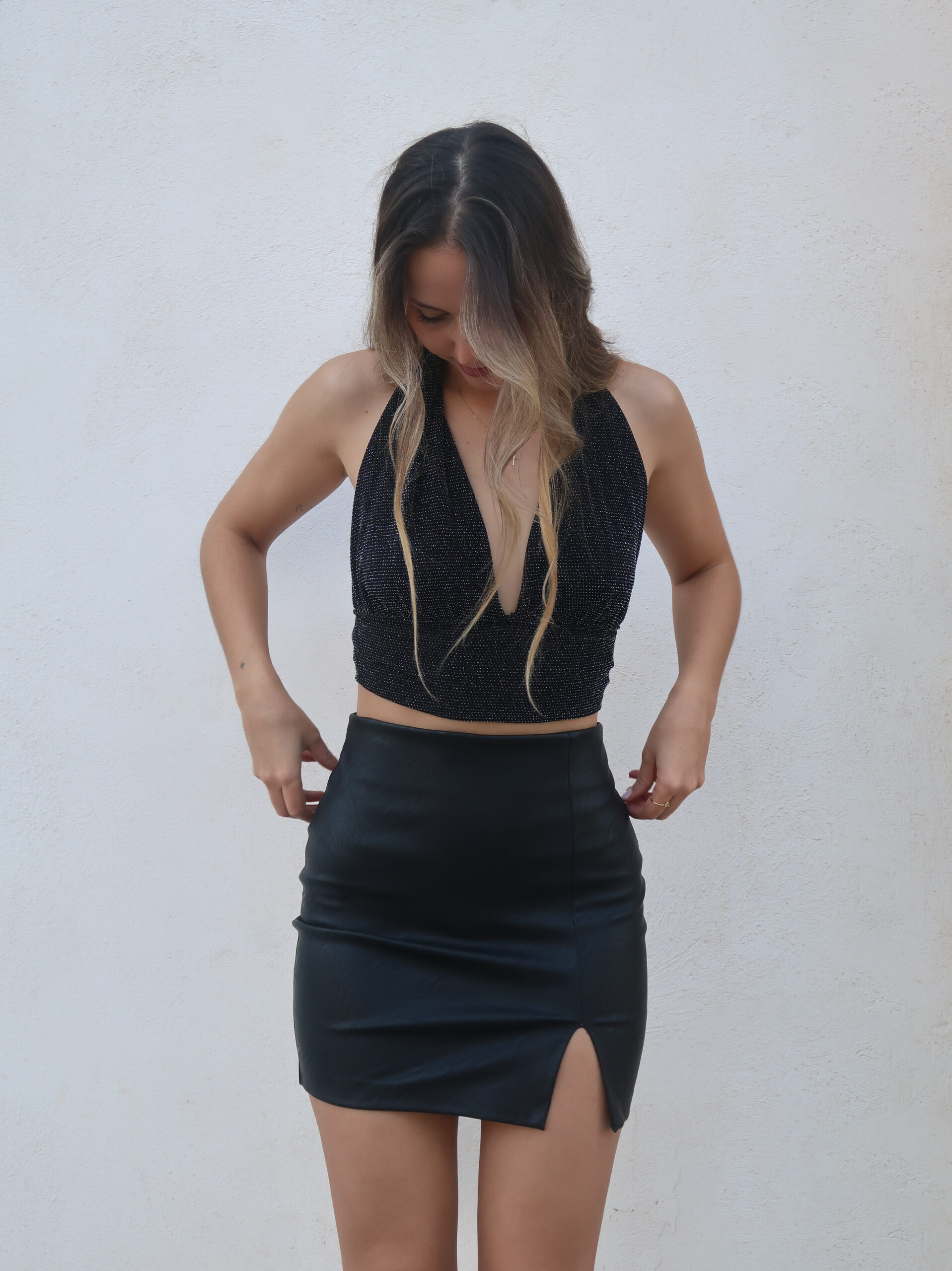 Esta falda de tejido polipiel elástico es un comodín para crear mil looks de fiesta combinada con un top, una camisa o un body .