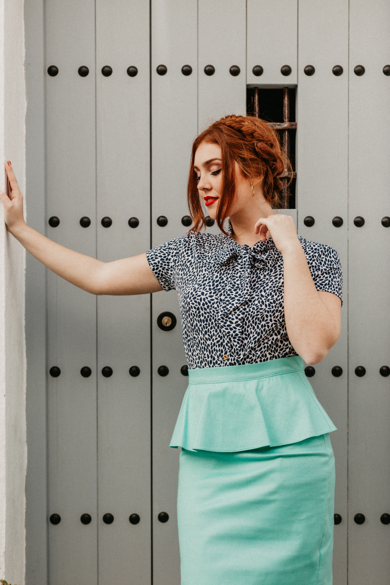 Falda recta con peplum en gabardina con elastán verde agua. Cierre de cremallera en la espalda. Se adapta sin marcar, es comodísima.