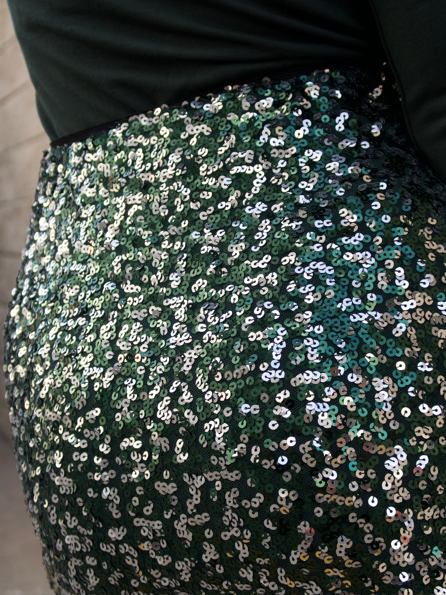 Falda elástica de lentejuelas en tonos verdes.